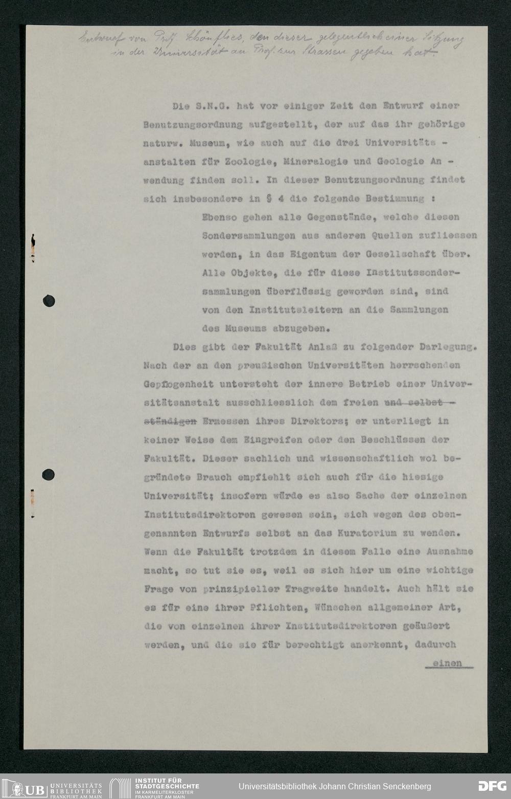 V176 Senckenberg Gesellschaft für Naturforschung, 255 - Benutzungsordnung für die Nutzung der Einrichtungen der Senckenbergischen Naturforschenden Gesellschaft durch die Universität
