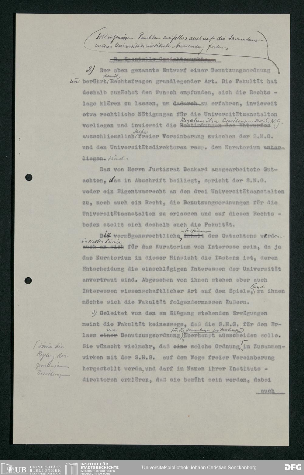 V176 Senckenberg Gesellschaft für Naturforschung, 255 - Benutzungsordnung für die Nutzung der Einrichtungen der Senckenbergischen Naturforschenden Gesellschaft durch die Universität