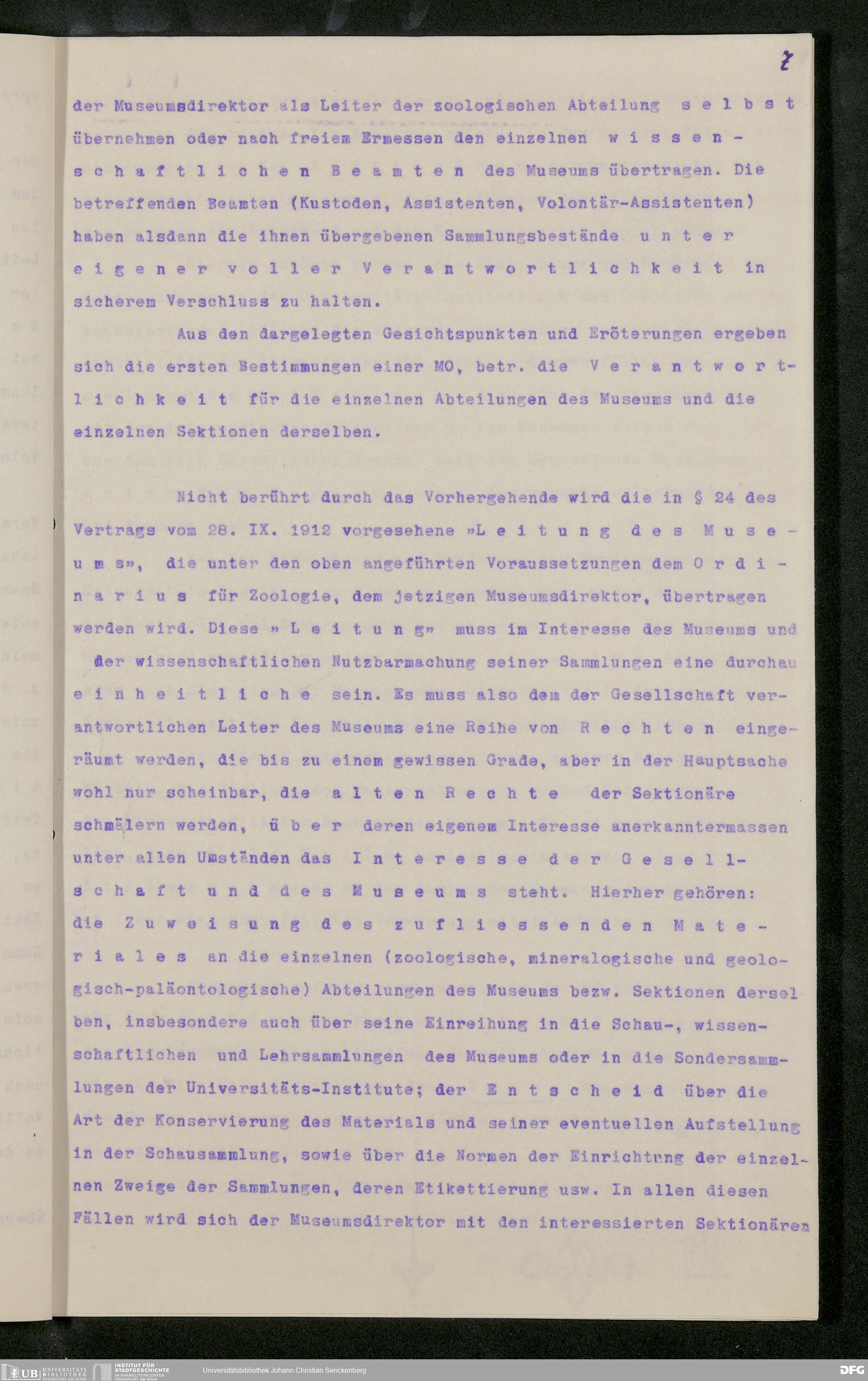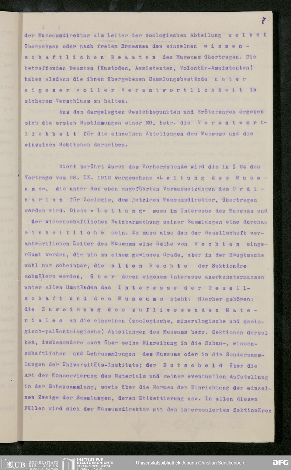 V176 Senckenberg Gesellschaft für Naturforschung, 282 - Erarbeitung einer inneren Ordnung für die Benutzung der Einrichtungen des Senckenbergmuseums, Bd. 2