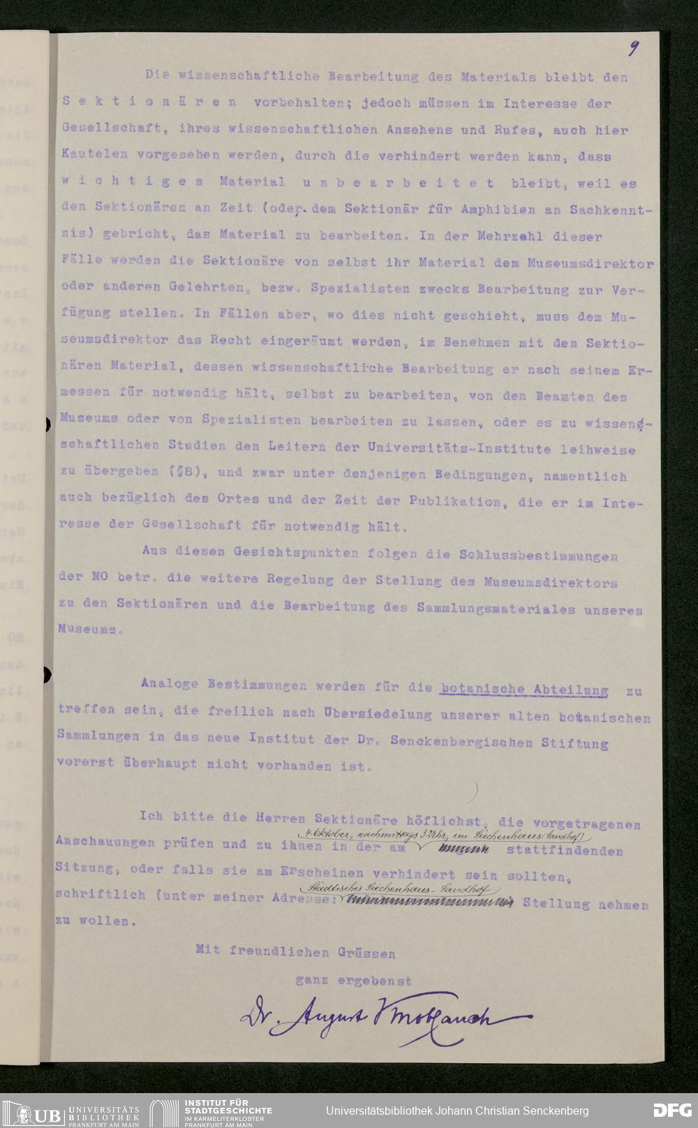 V176 Senckenberg Gesellschaft für Naturforschung, 282 - Erarbeitung einer inneren Ordnung für die Benutzung der Einrichtungen des Senckenbergmuseums, Bd. 2