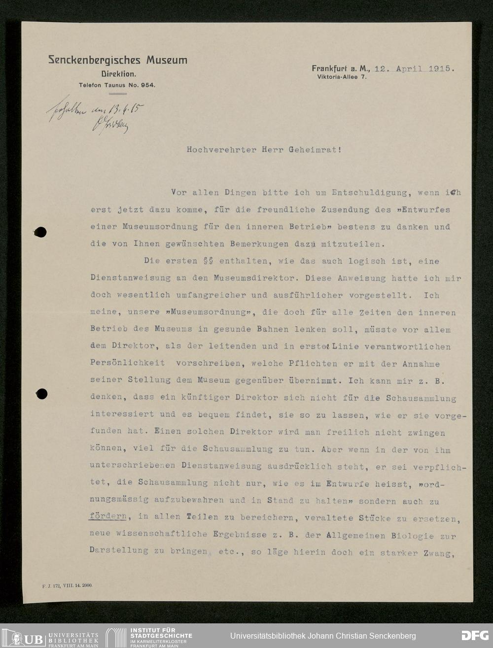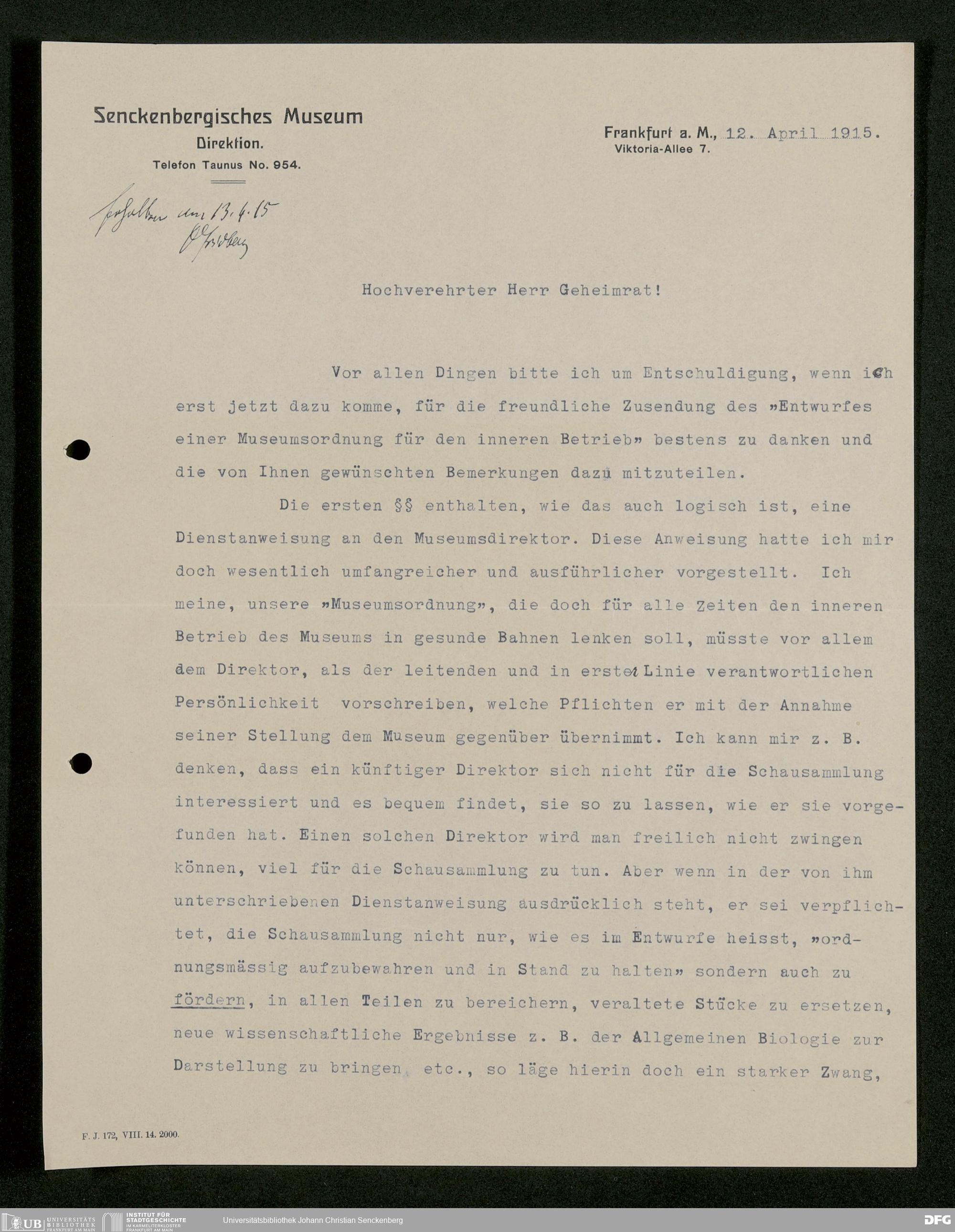 V176 Senckenberg Gesellschaft für Naturforschung, 282 - Erarbeitung einer inneren Ordnung für die Benutzung der Einrichtungen des Senckenbergmuseums, Bd. 2