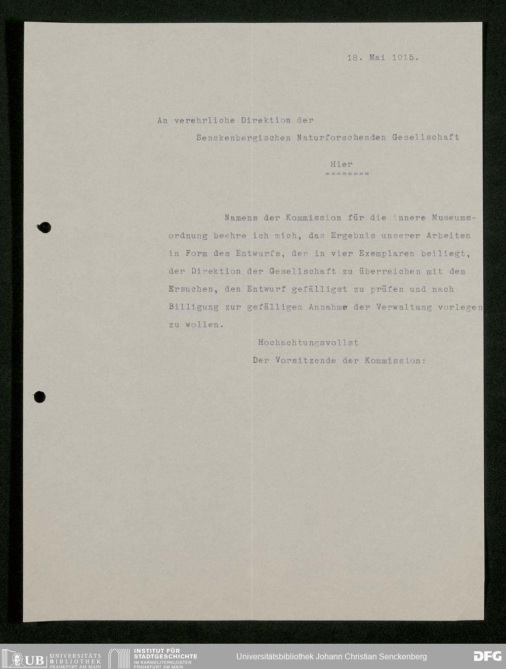 V176 Senckenberg Gesellschaft für Naturforschung, 282 - Erarbeitung einer inneren Ordnung für die Benutzung der Einrichtungen des Senckenbergmuseums, Bd. 2