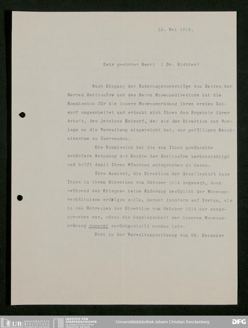V176 Senckenberg Gesellschaft für Naturforschung, 282 - Erarbeitung einer inneren Ordnung für die Benutzung der Einrichtungen des Senckenbergmuseums, Bd. 2