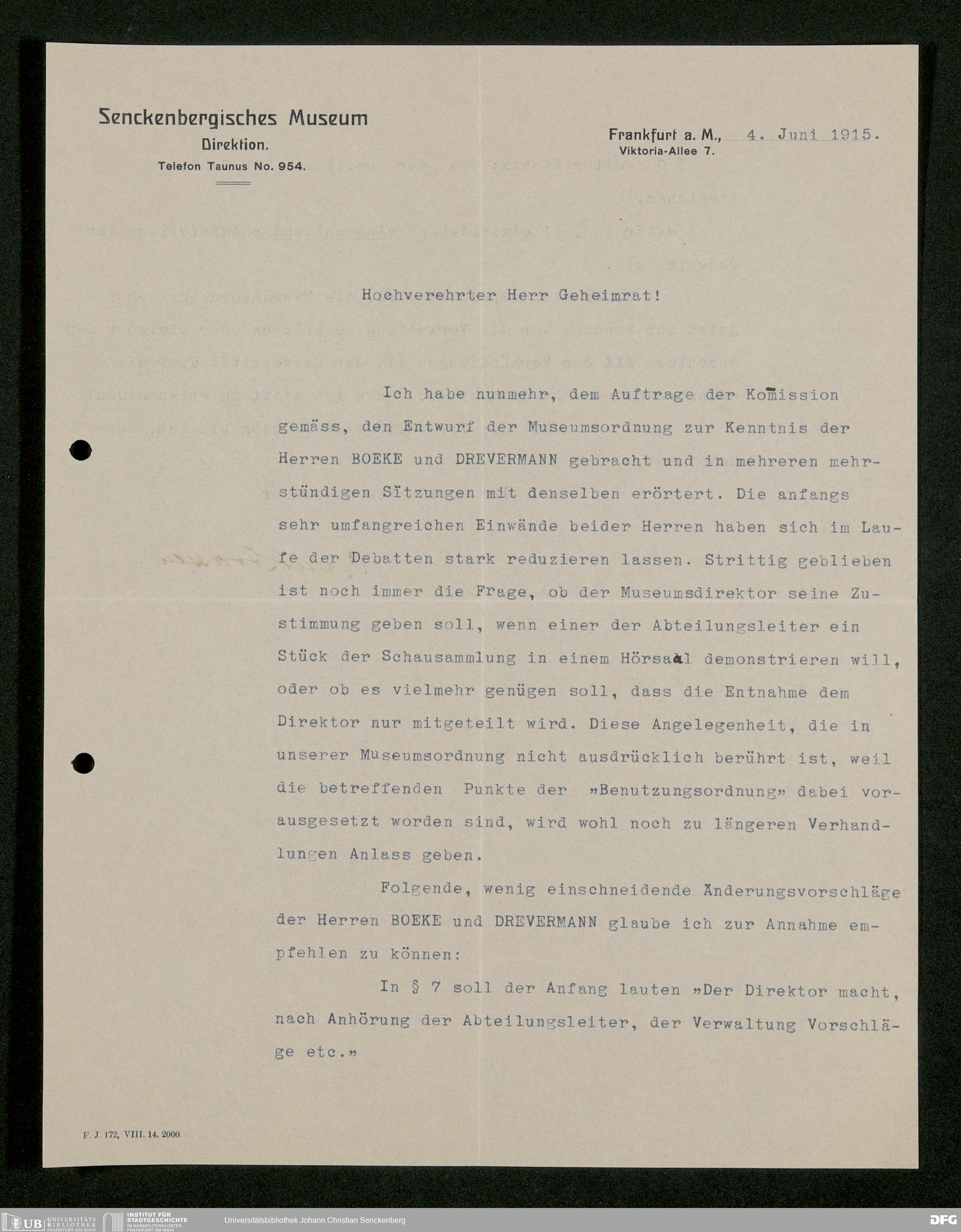 V176 Senckenberg Gesellschaft für Naturforschung, 282 - Erarbeitung einer inneren Ordnung für die Benutzung der Einrichtungen des Senckenbergmuseums, Bd. 2