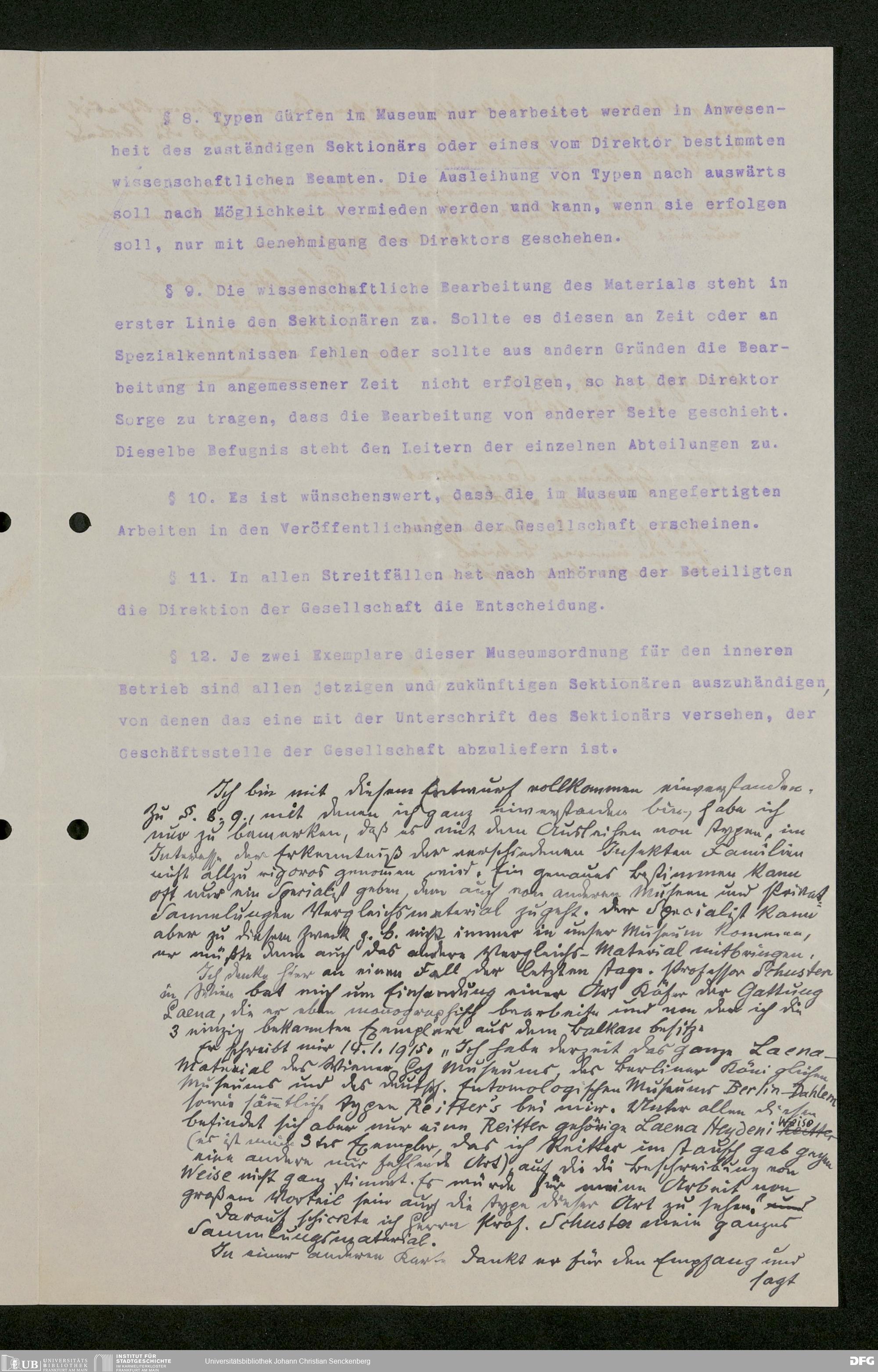 V176 Senckenberg Gesellschaft für Naturforschung, 282 - Erarbeitung einer inneren Ordnung für die Benutzung der Einrichtungen des Senckenbergmuseums, Bd. 2
