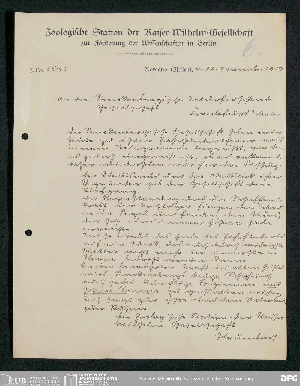 V176 Senckenberg Gesellschaft für Naturforschung, 306 - Eingegangene Gratulationsschreiben anlässlich der Jahrhundertfeier