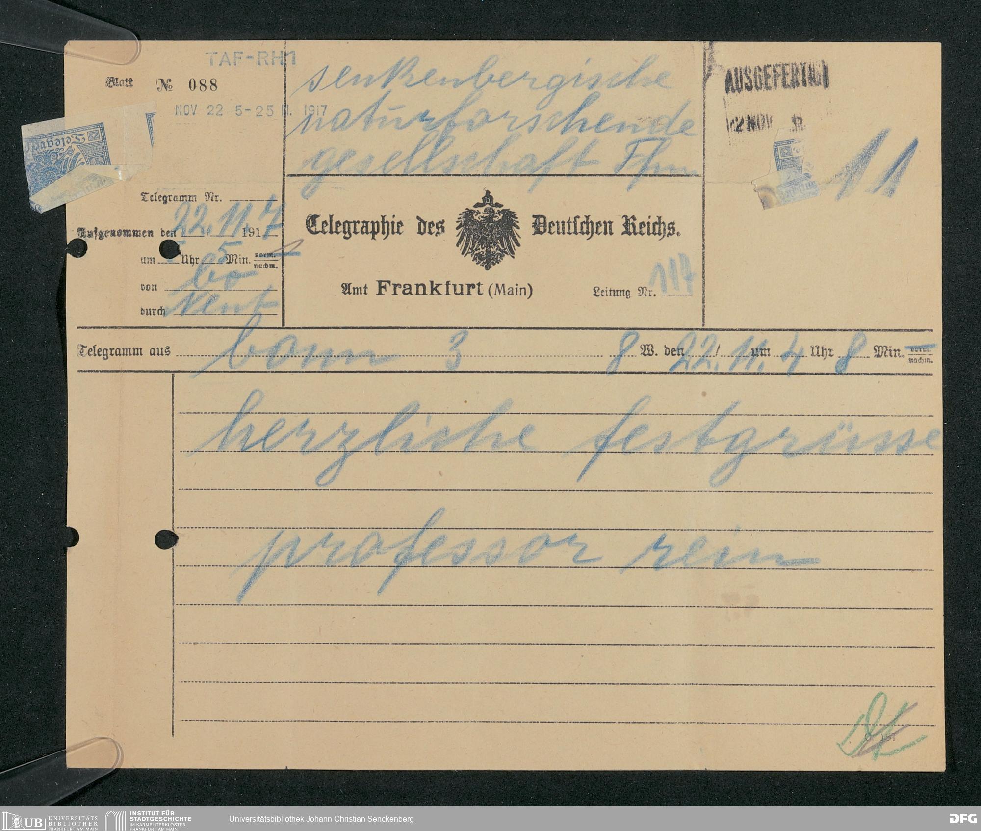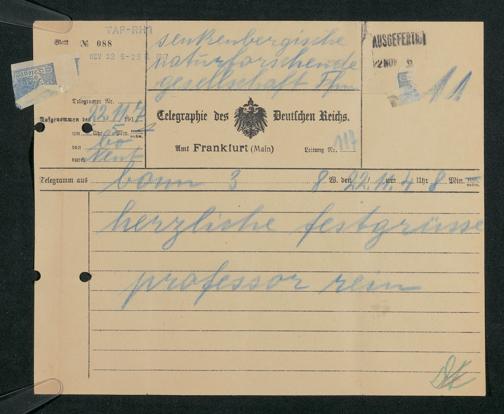 V176 Senckenberg Gesellschaft für Naturforschung, 306 - Eingegangene Gratulationsschreiben anlässlich der Jahrhundertfeier