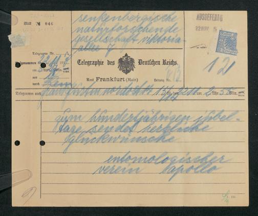V176 Senckenberg Gesellschaft für Naturforschung, 306 - Eingegangene Gratulationsschreiben anlässlich der Jahrhundertfeier