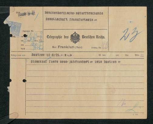 V176 Senckenberg Gesellschaft für Naturforschung, 306 - Eingegangene Gratulationsschreiben anlässlich der Jahrhundertfeier