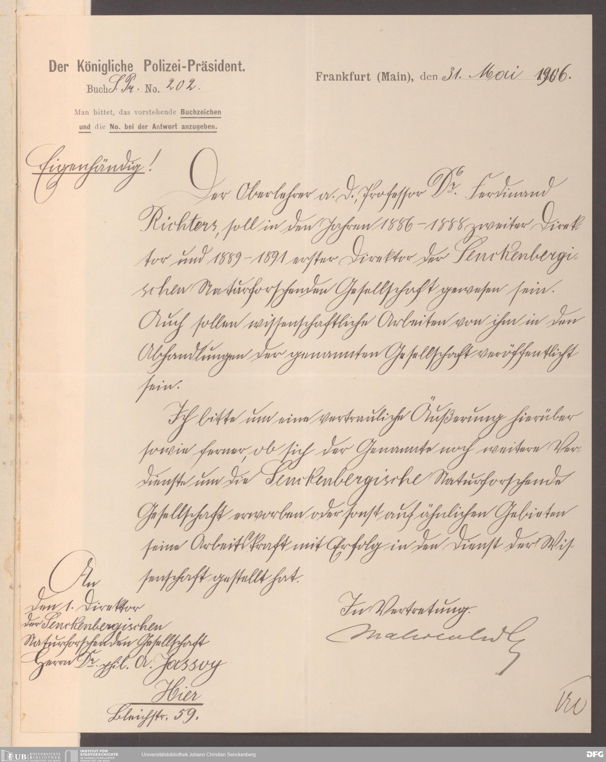 V176 Senckenberg Gesellschaft für Naturforschung, 326 - Bemühungen der Senckenbergischen Naturforschenden Gesellschaft um die Verleihung staatlicher Ehrentitel und Orden an verdiente Mitarbeiter und Förderer