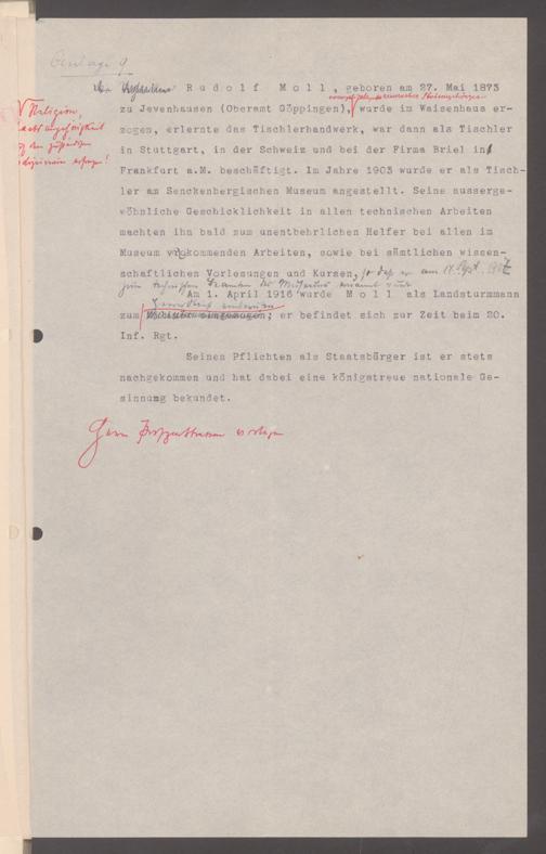 V176 Senckenberg Gesellschaft für Naturforschung, 326 - Bemühungen der Senckenbergischen Naturforschenden Gesellschaft um die Verleihung staatlicher Ehrentitel und Orden an verdiente Mitarbeiter und Förderer