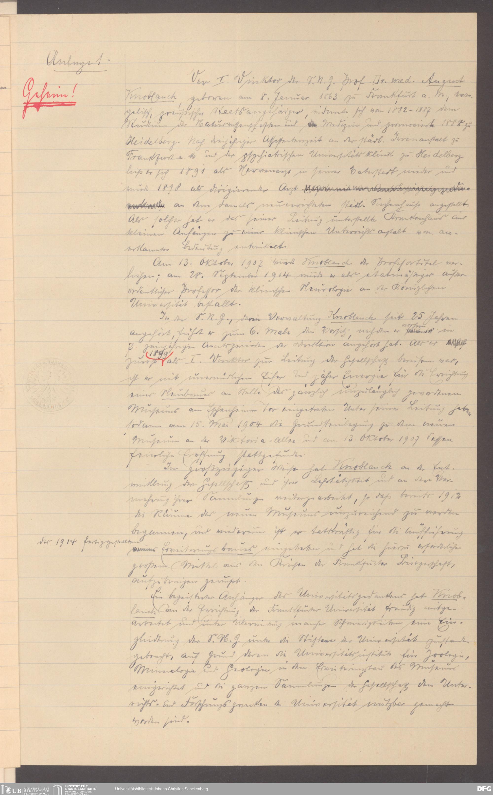 V176 Senckenberg Gesellschaft für Naturforschung, 326 - Bemühungen der Senckenbergischen Naturforschenden Gesellschaft um die Verleihung staatlicher Ehrentitel und Orden an verdiente Mitarbeiter und Förderer