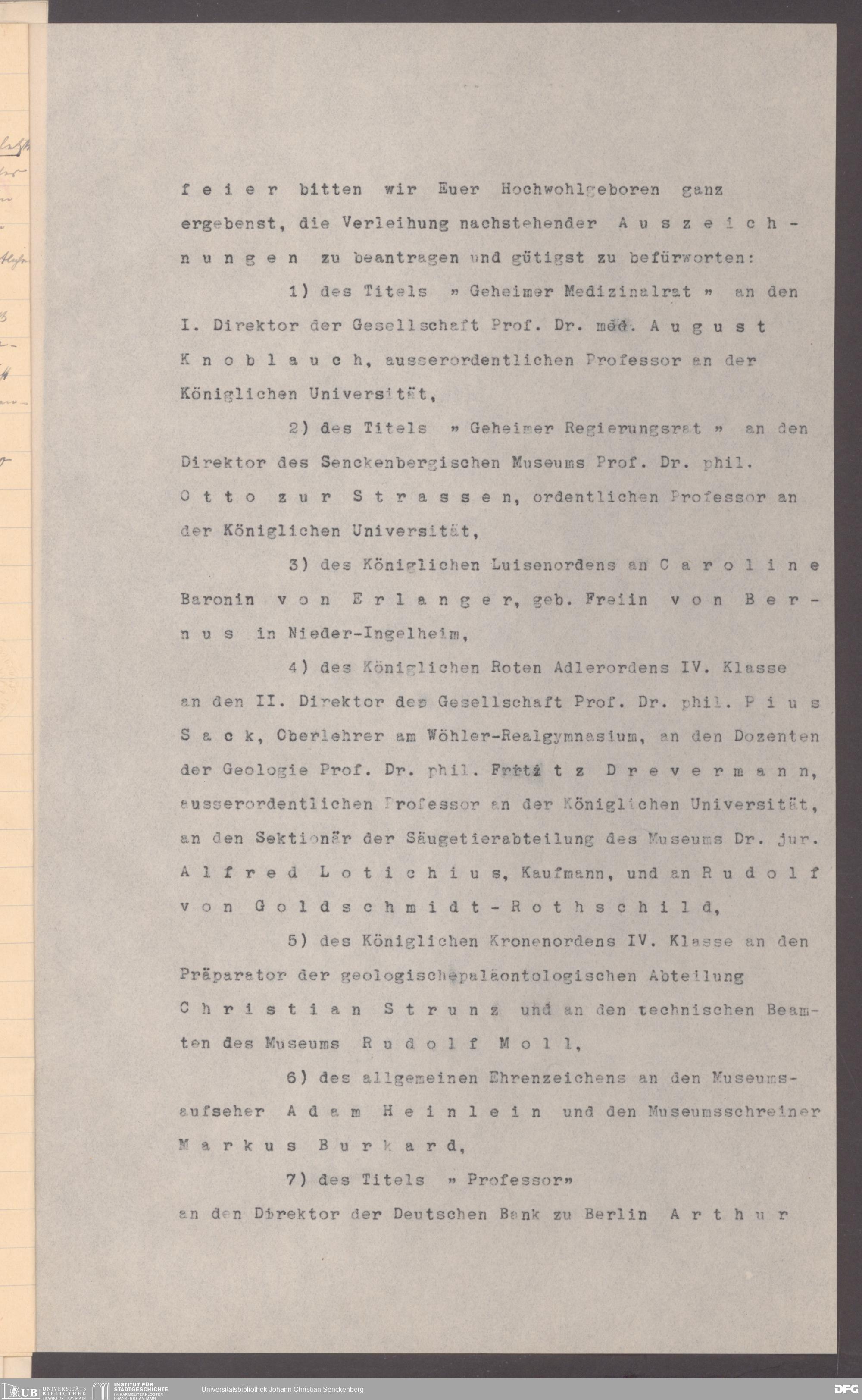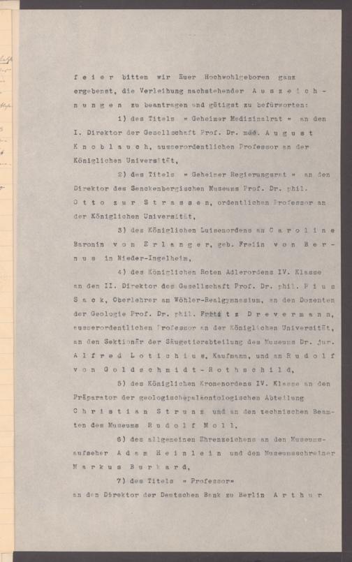 V176 Senckenberg Gesellschaft für Naturforschung, 326 - Bemühungen der Senckenbergischen Naturforschenden Gesellschaft um die Verleihung staatlicher Ehrentitel und Orden an verdiente Mitarbeiter und Förderer