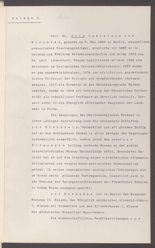 V176 Senckenberg Gesellschaft für Naturforschung, 326 - Bemühungen der Senckenbergischen Naturforschenden Gesellschaft um die Verleihung staatlicher Ehrentitel und Orden an verdiente Mitarbeiter und Förderer