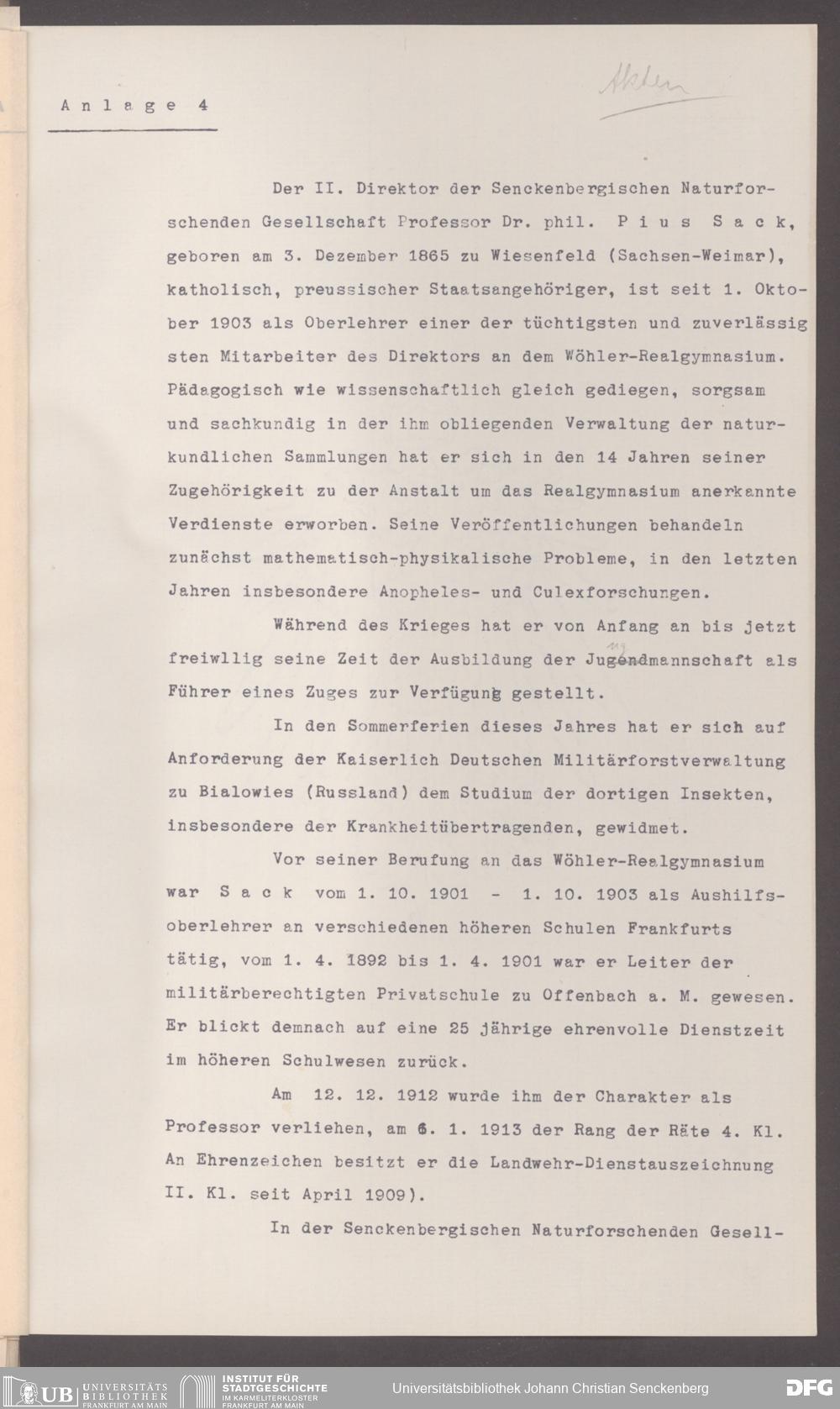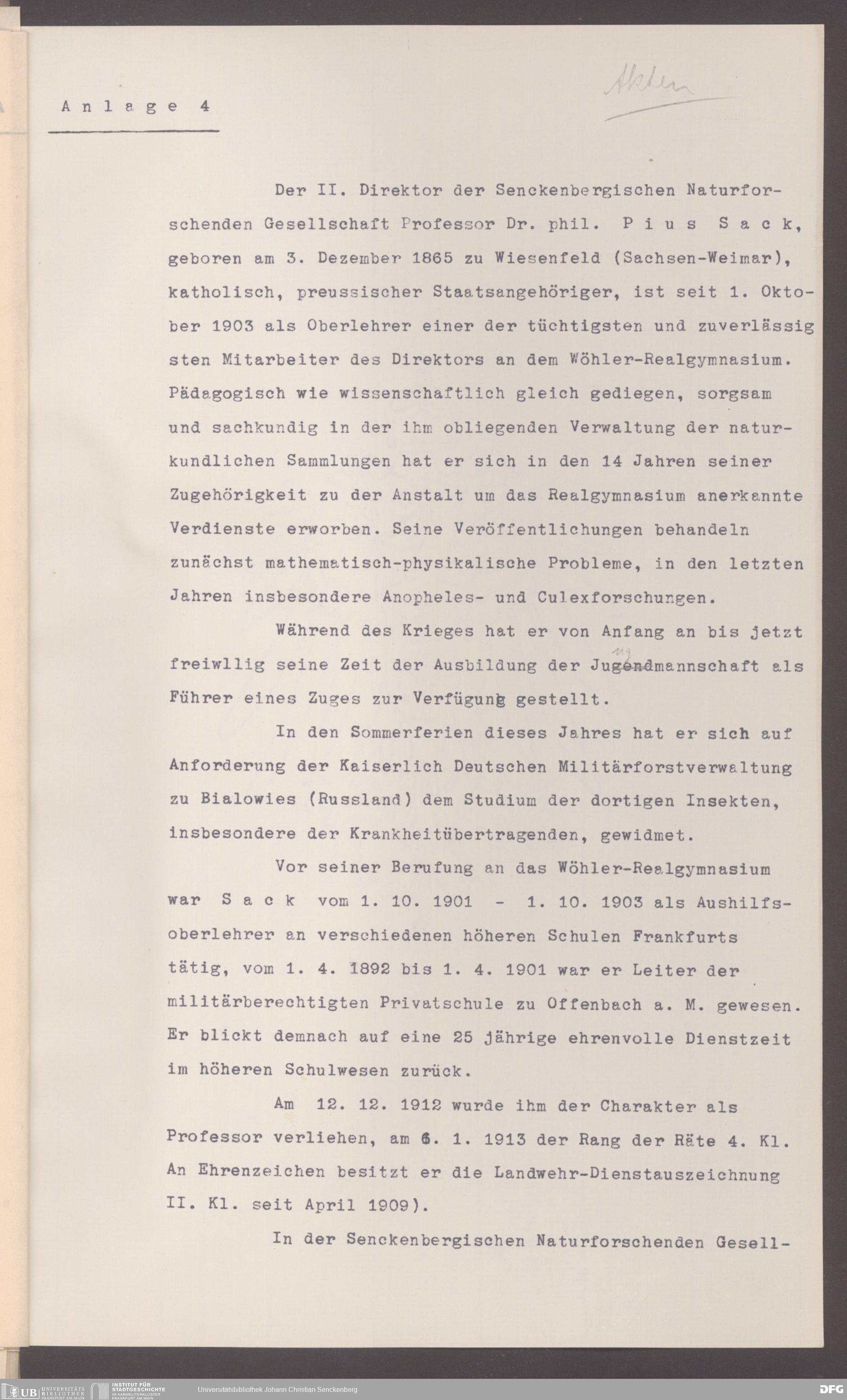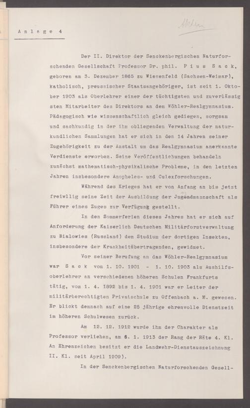 V176 Senckenberg Gesellschaft für Naturforschung, 326 - Bemühungen der Senckenbergischen Naturforschenden Gesellschaft um die Verleihung staatlicher Ehrentitel und Orden an verdiente Mitarbeiter und Förderer
