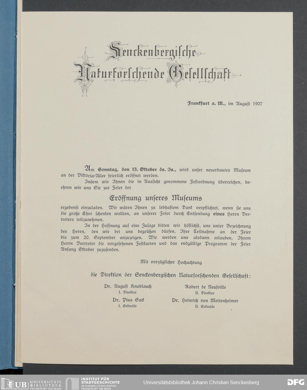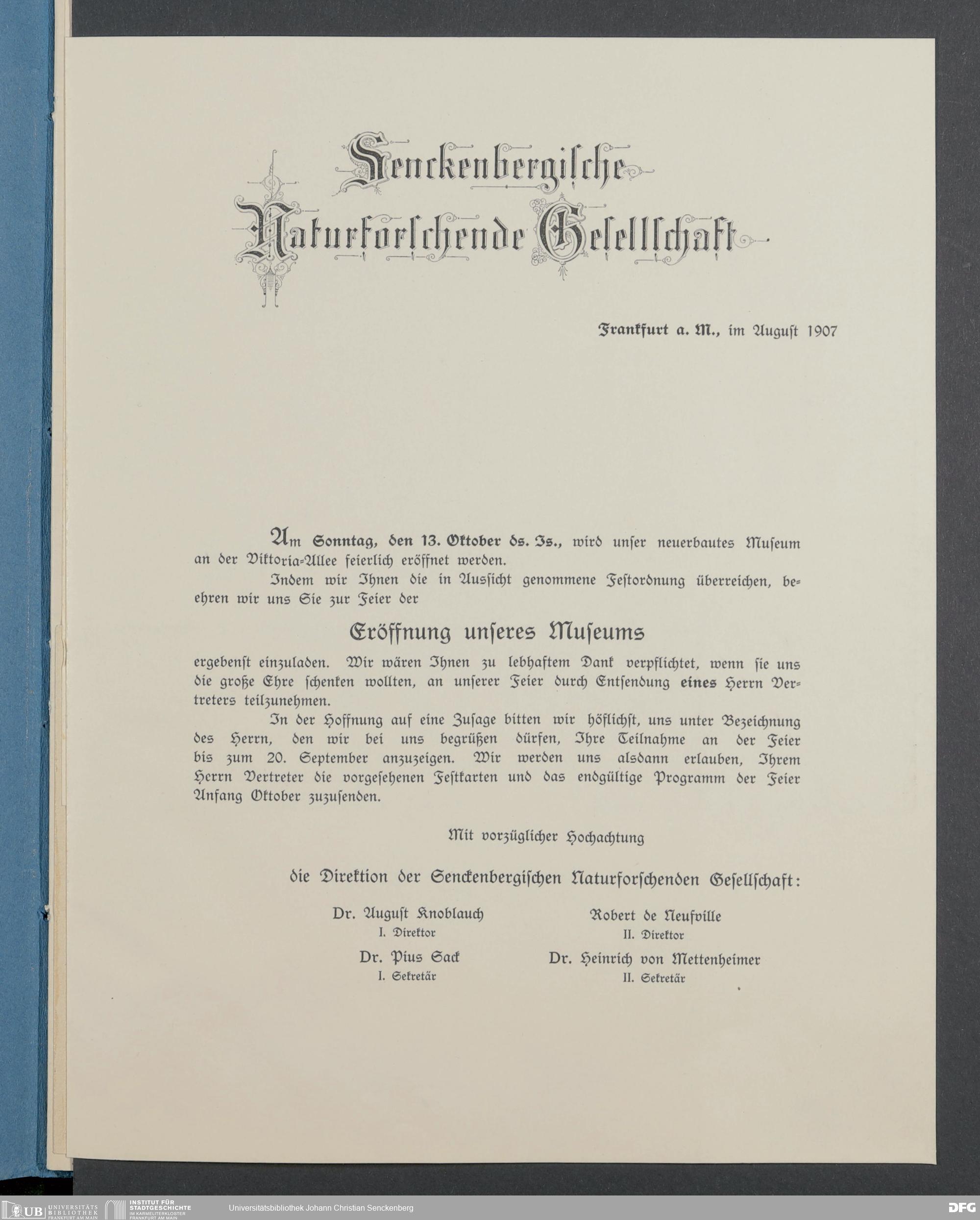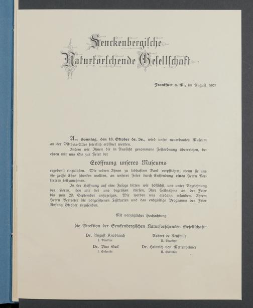 V176 Senckenberg Gesellschaft für Naturforschung, 332 - Einladung von Vertretern von Museen und wissenschaftlichen Gesellschaften zur Eröffnung des neuen Senckenbergmuseums, Bd. 3