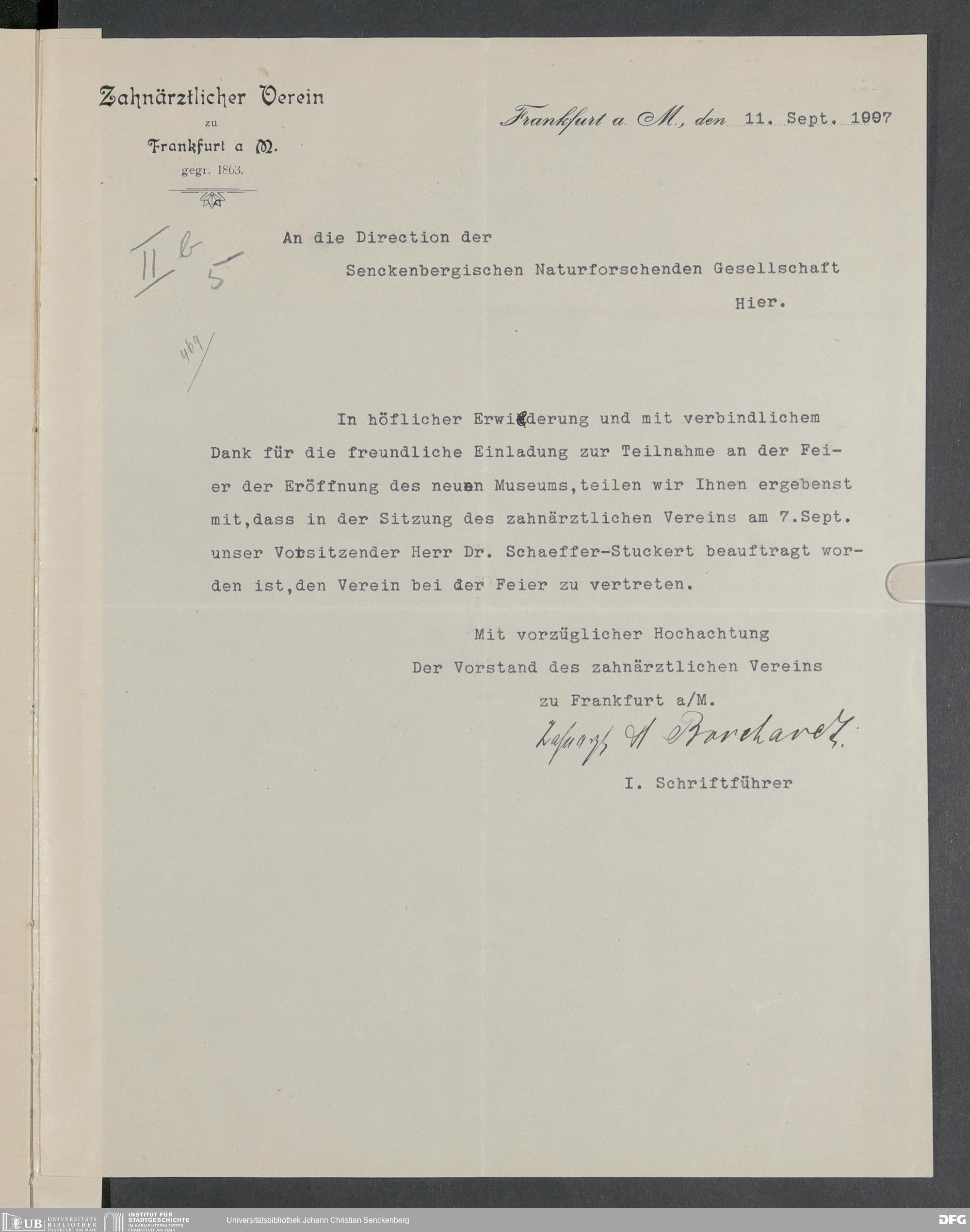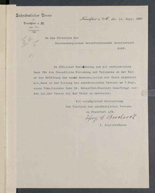V176 Senckenberg Gesellschaft für Naturforschung, 332 - Einladung von Vertretern von Museen und wissenschaftlichen Gesellschaften zur Eröffnung des neuen Senckenbergmuseums, Bd. 3