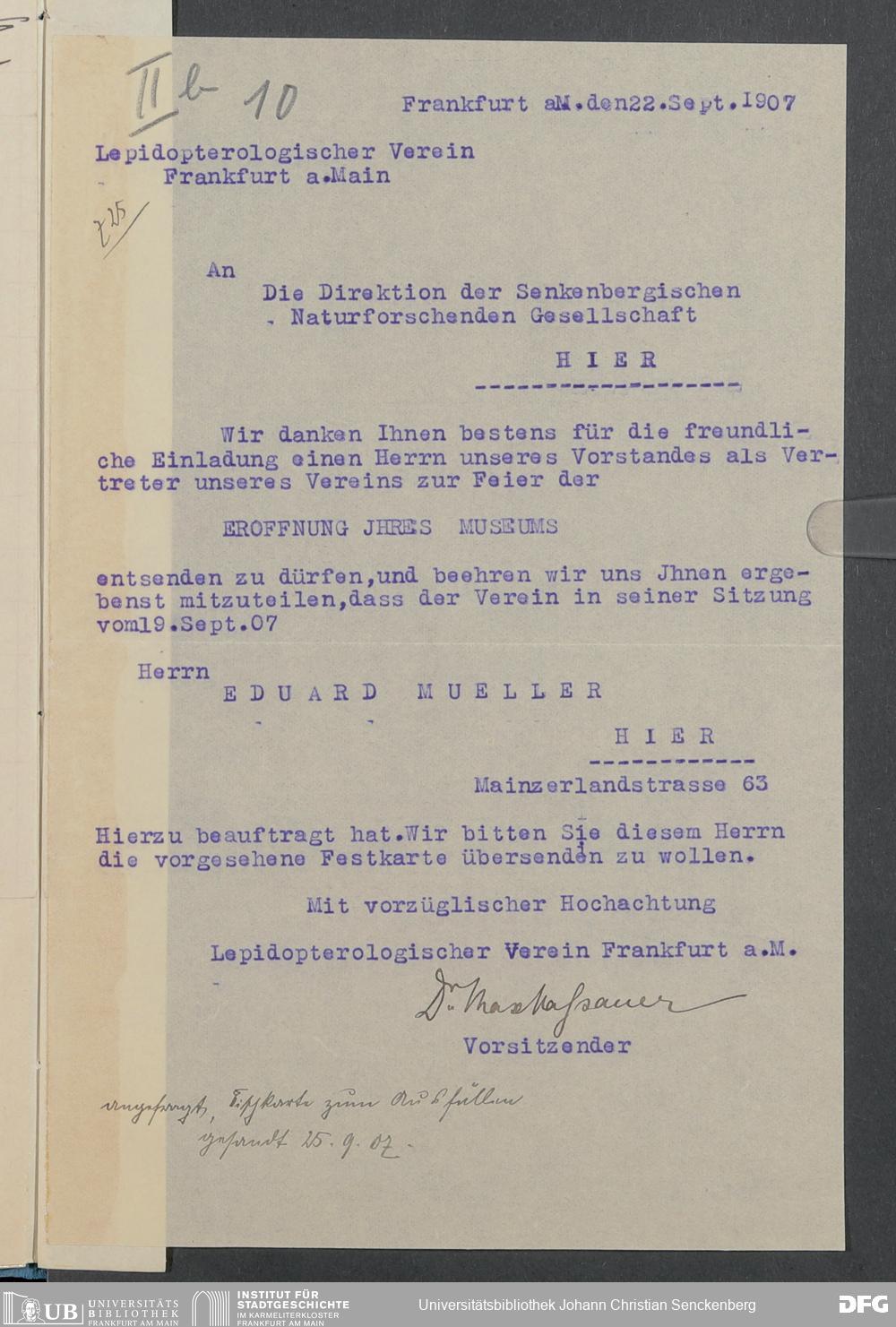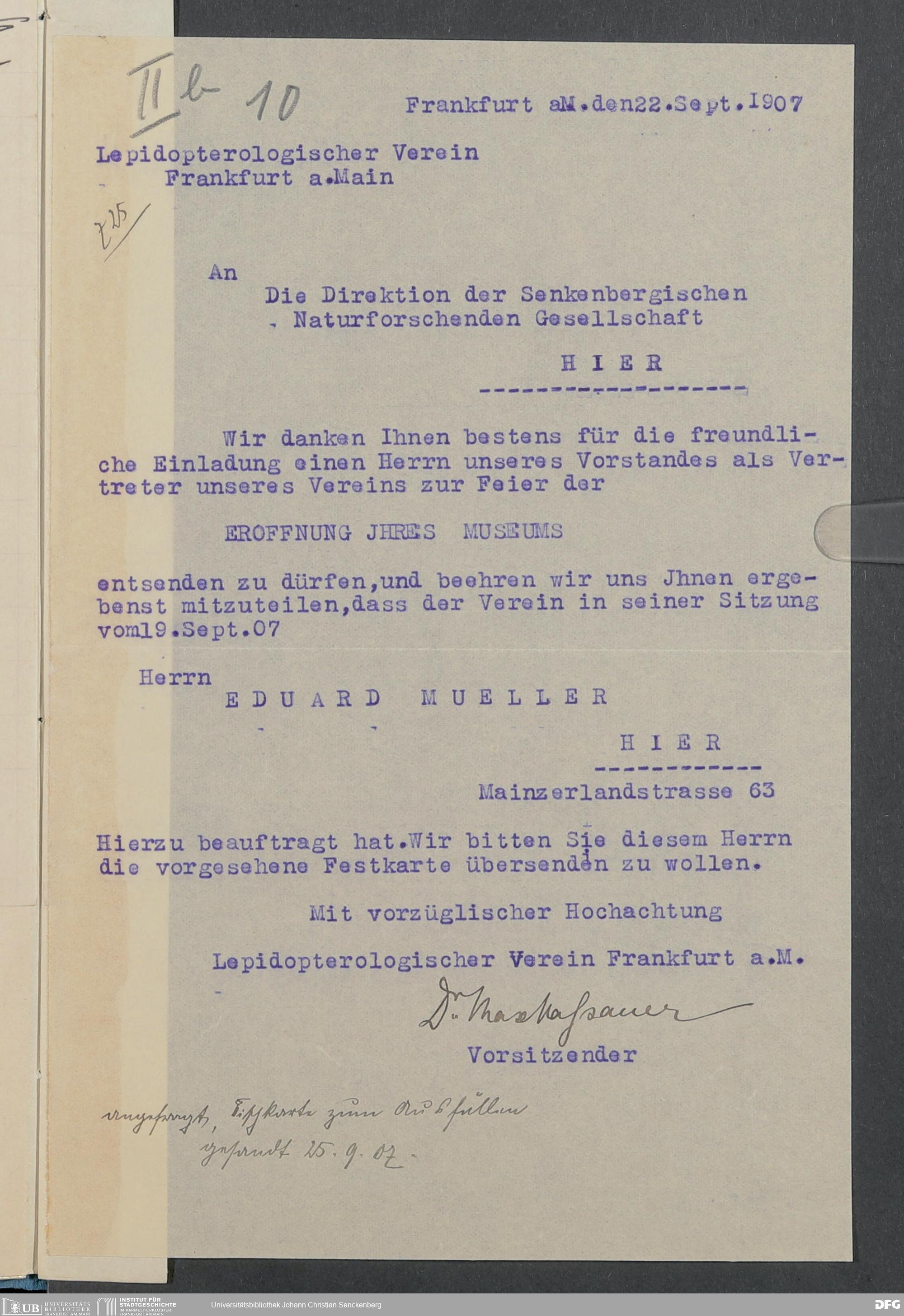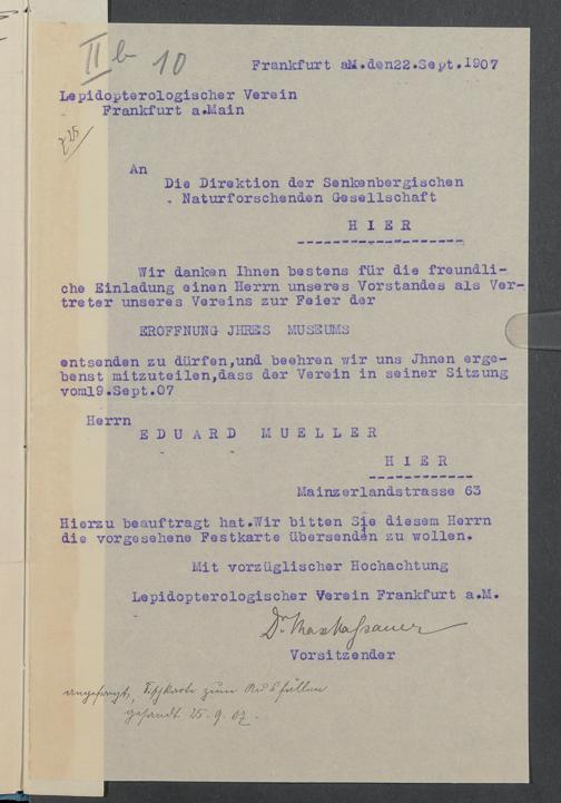 V176 Senckenberg Gesellschaft für Naturforschung, 332 - Einladung von Vertretern von Museen und wissenschaftlichen Gesellschaften zur Eröffnung des neuen Senckenbergmuseums, Bd. 3