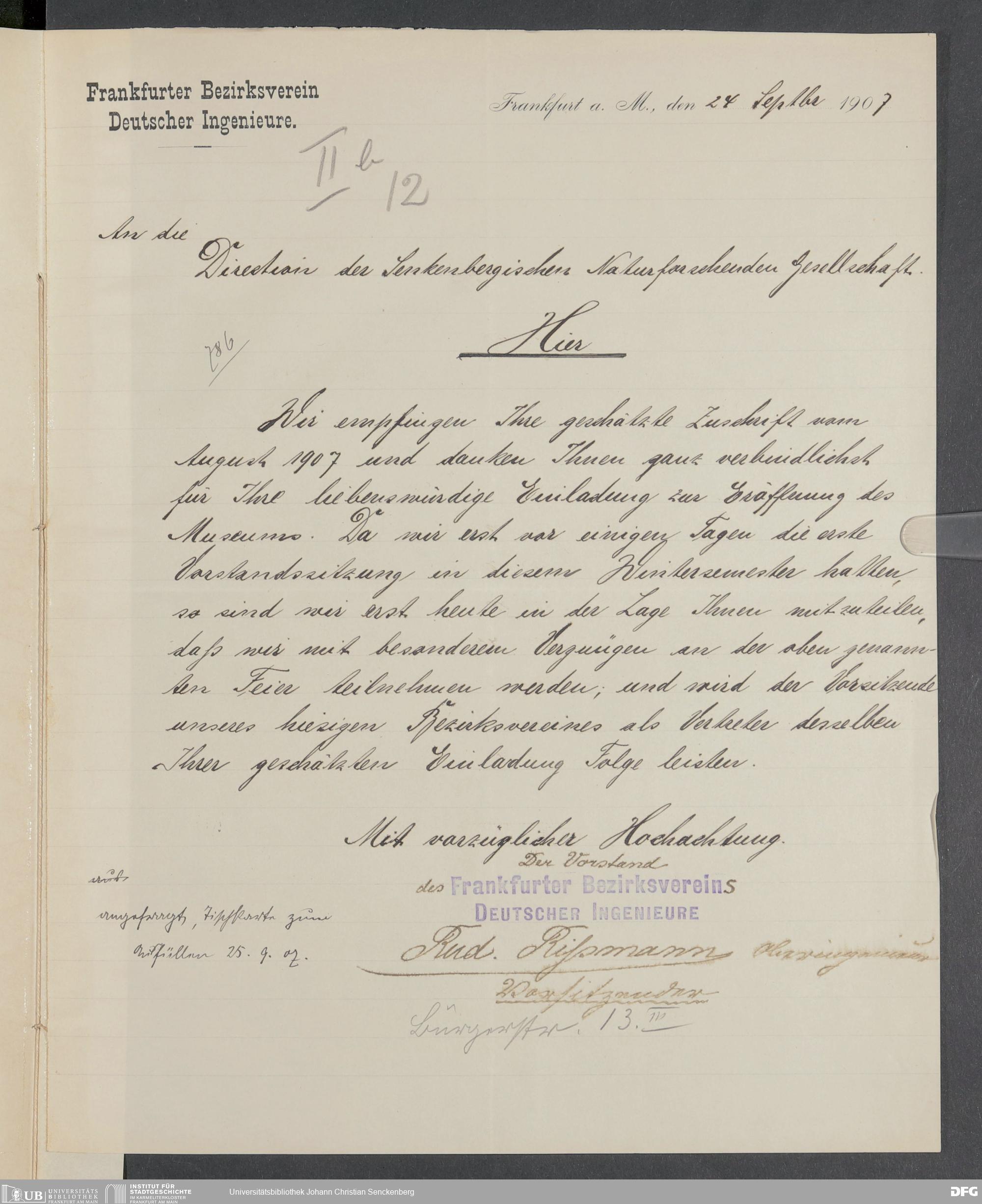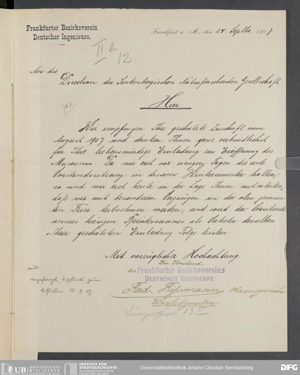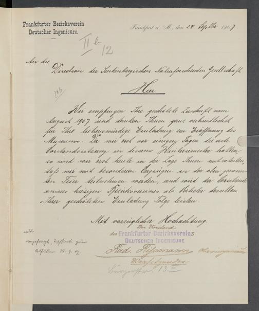 V176 Senckenberg Gesellschaft für Naturforschung, 332 - Einladung von Vertretern von Museen und wissenschaftlichen Gesellschaften zur Eröffnung des neuen Senckenbergmuseums, Bd. 3