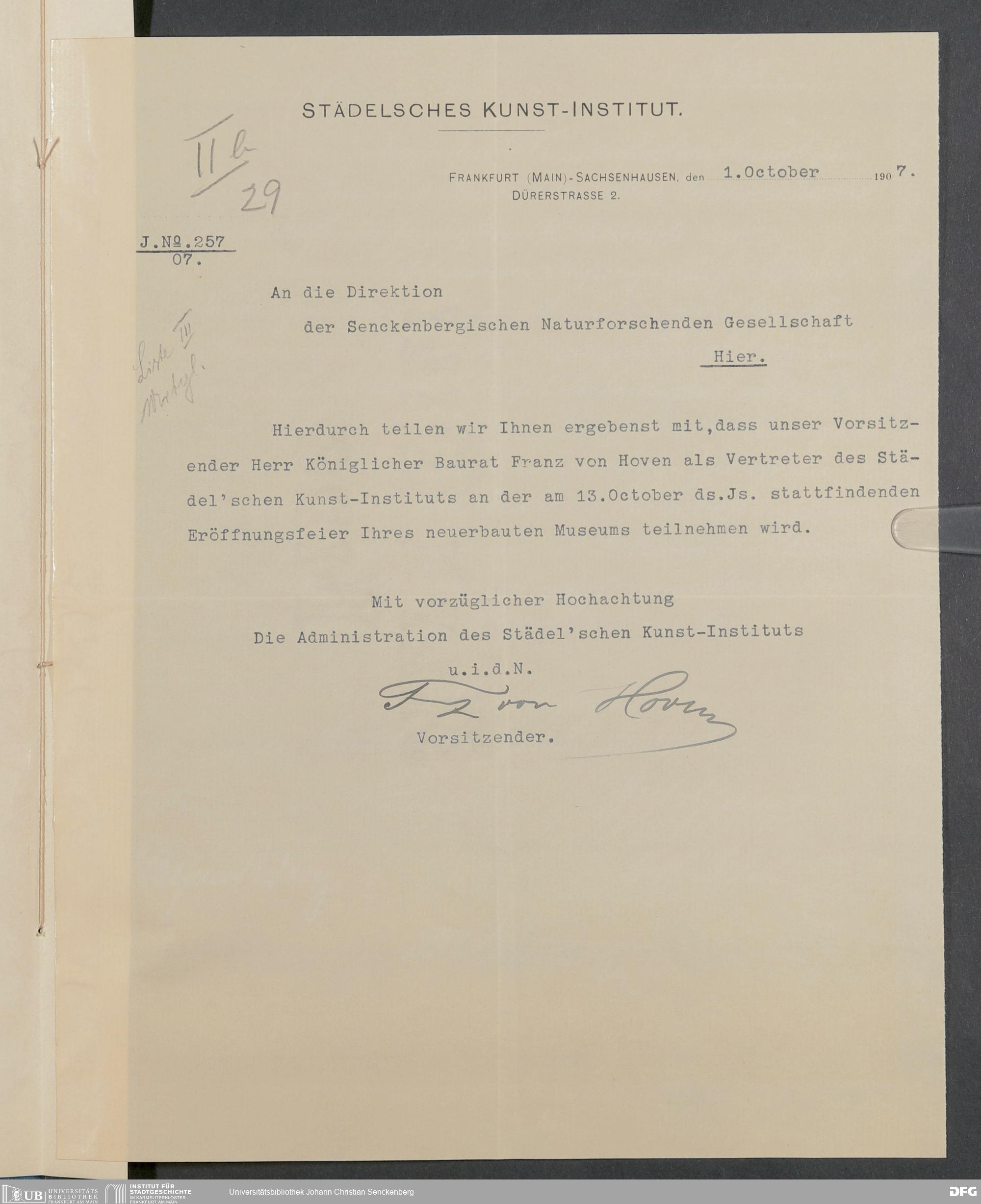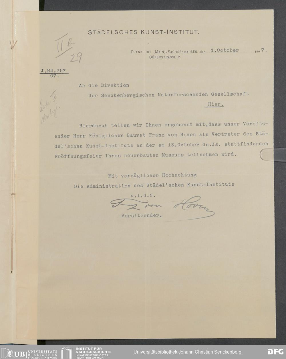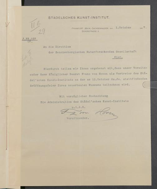 V176 Senckenberg Gesellschaft für Naturforschung, 332 - Einladung von Vertretern von Museen und wissenschaftlichen Gesellschaften zur Eröffnung des neuen Senckenbergmuseums, Bd. 3