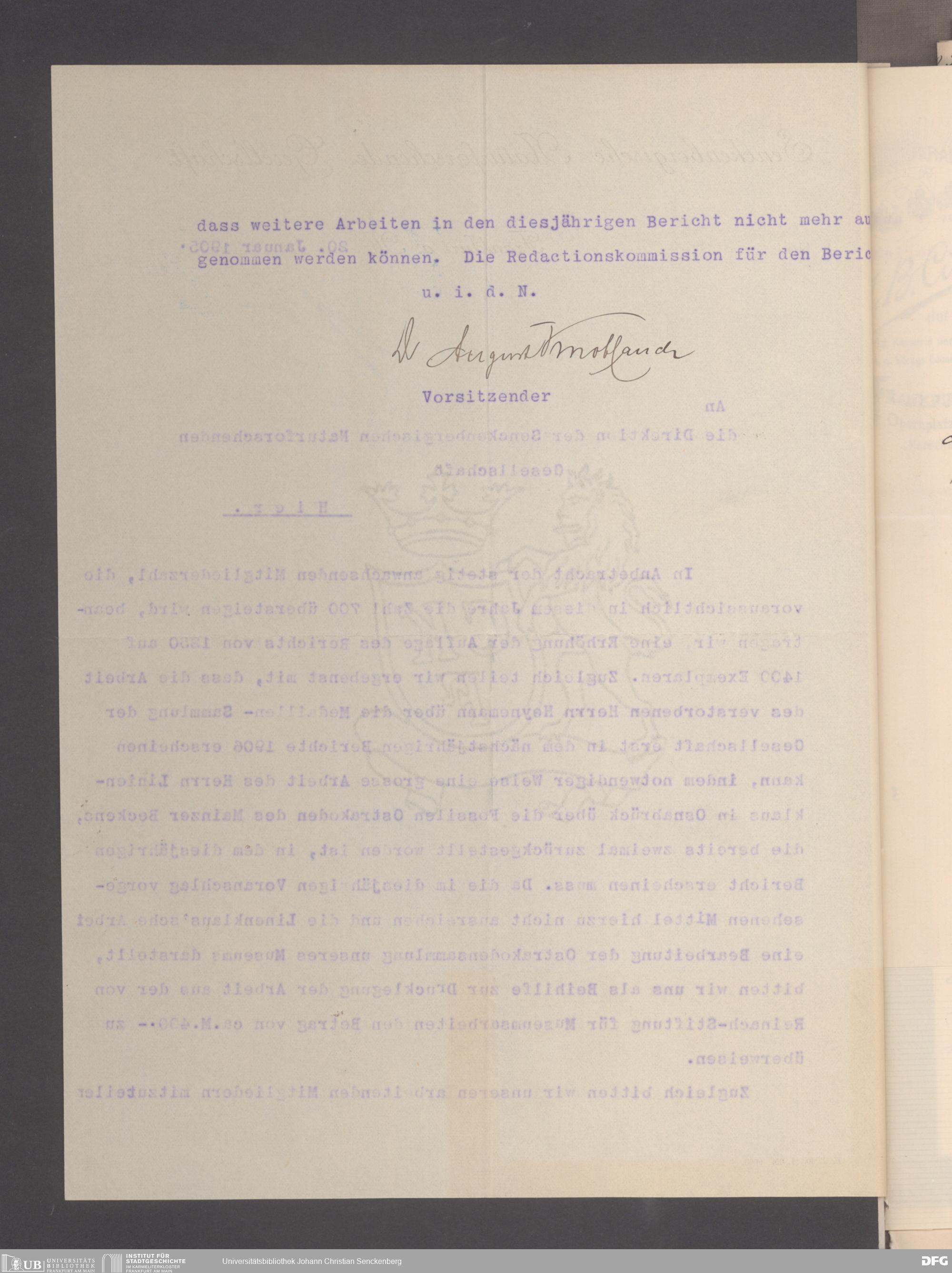 V176 Senckenberg Gesellschaft für Naturforschung, 338 - Tätigkeit der Redaktionskommission für den "Bericht der Senckenbergischen Naturforschenden Gesellschaft in Frankfurt am Main", Bd. 1