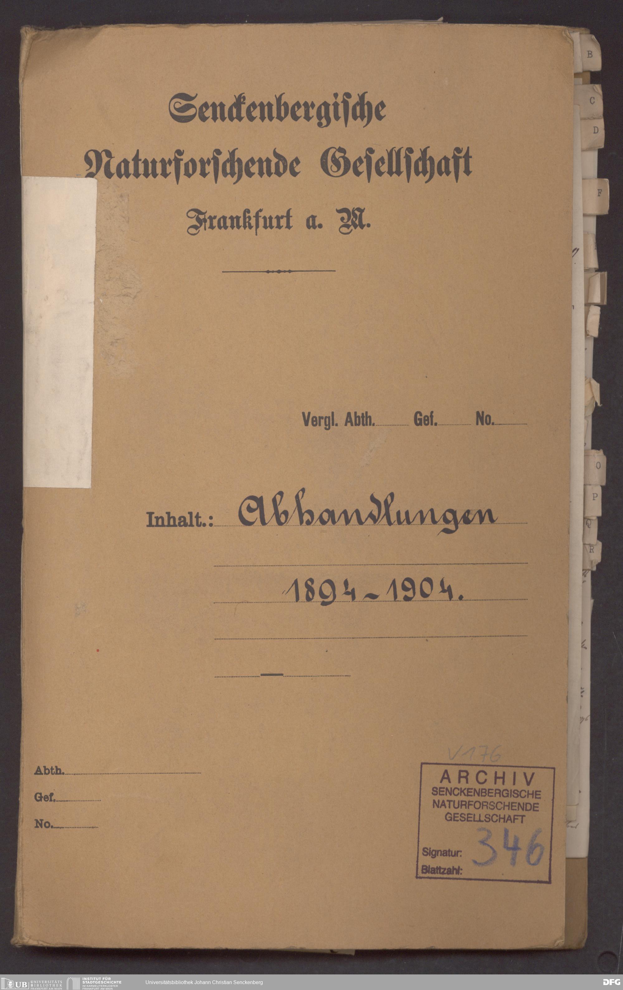 V176 Senckenberg Gesellschaft für Naturforschung, 346 - Herausgabe der "Abhandlungen der Senckenbergischen Naturforschenden Gesellschaft", Bd. 3