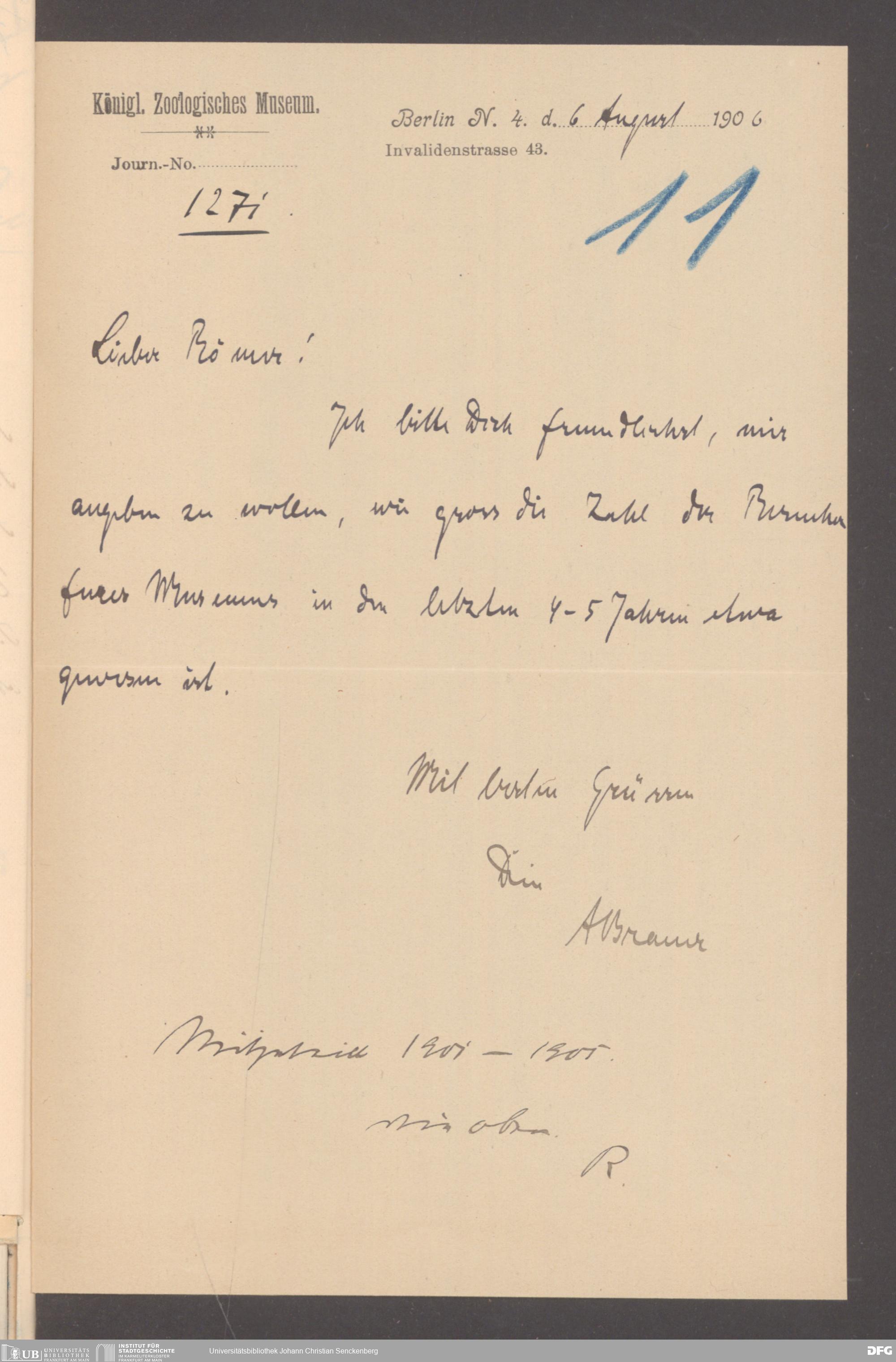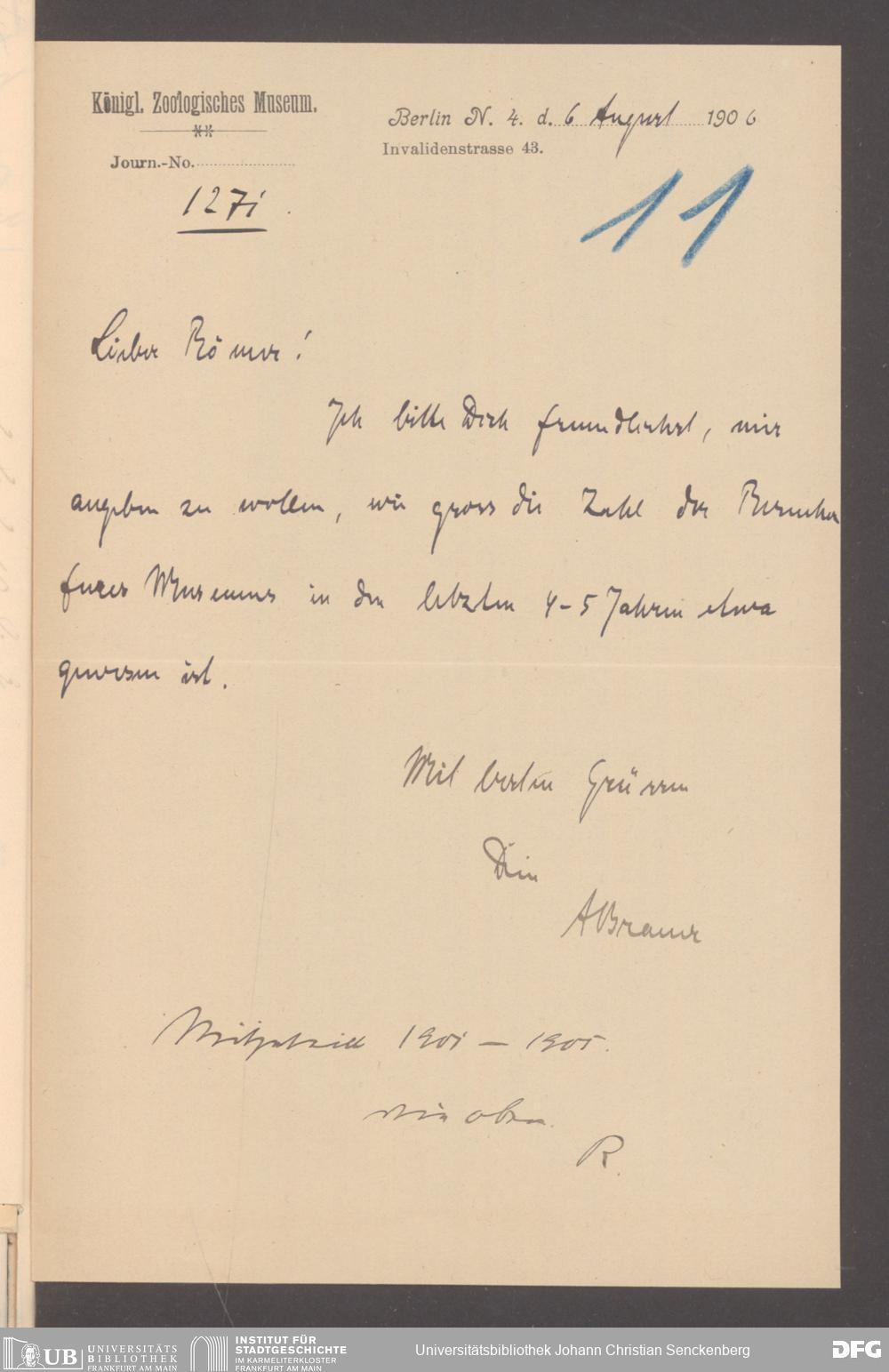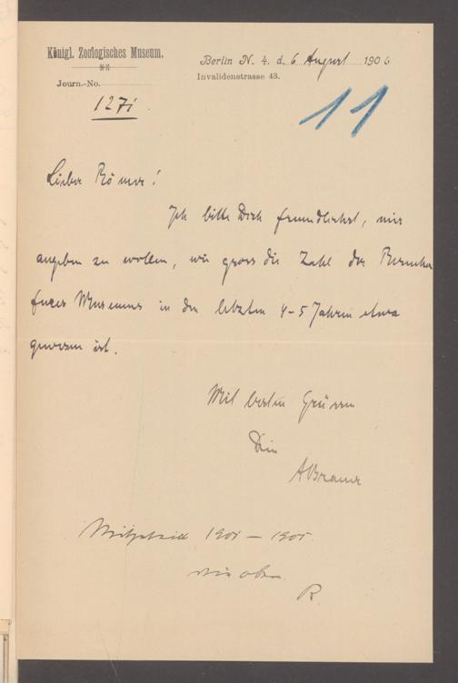 V176 Senckenberg Gesellschaft für Naturforschung, 355 - Anfragen zum Besuch des Senckenbergmuseums, Bd. 1