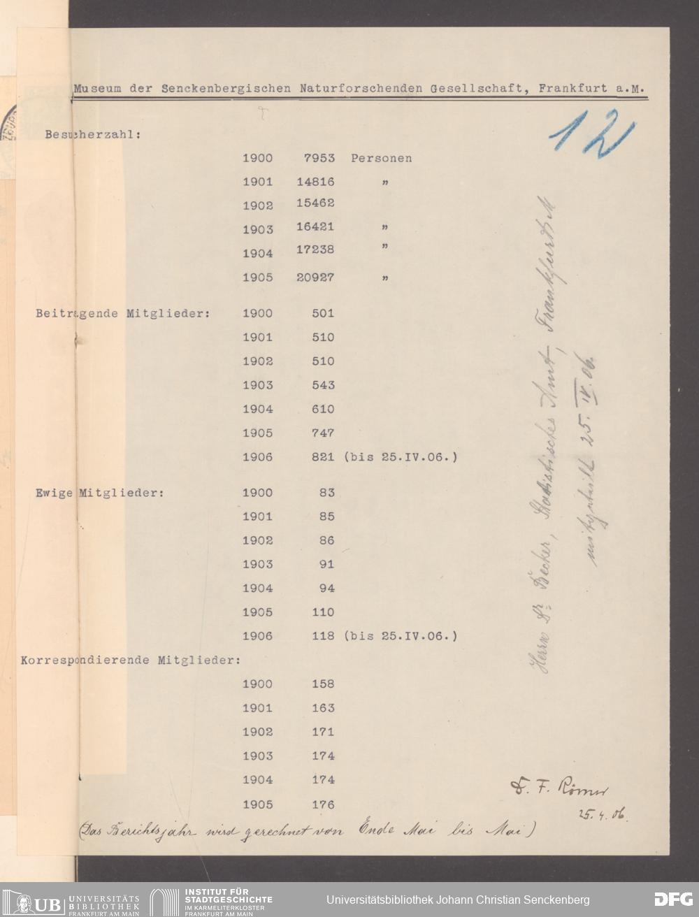 V176 Senckenberg Gesellschaft für Naturforschung, 355 - Anfragen zum Besuch des Senckenbergmuseums, Bd. 1