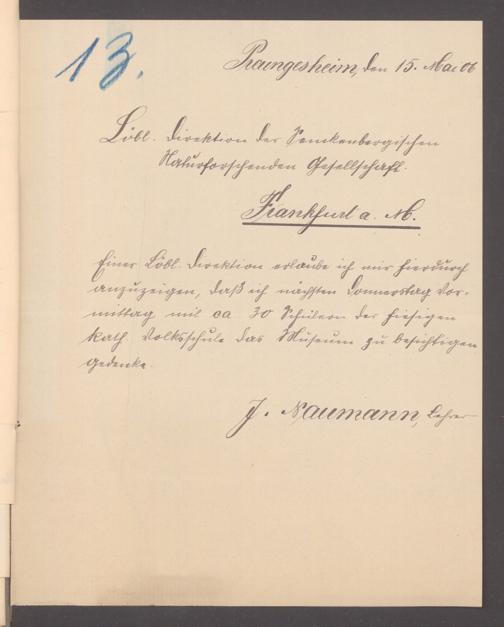 V176 Senckenberg Gesellschaft für Naturforschung, 355 - Anfragen zum Besuch des Senckenbergmuseums, Bd. 1