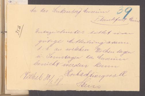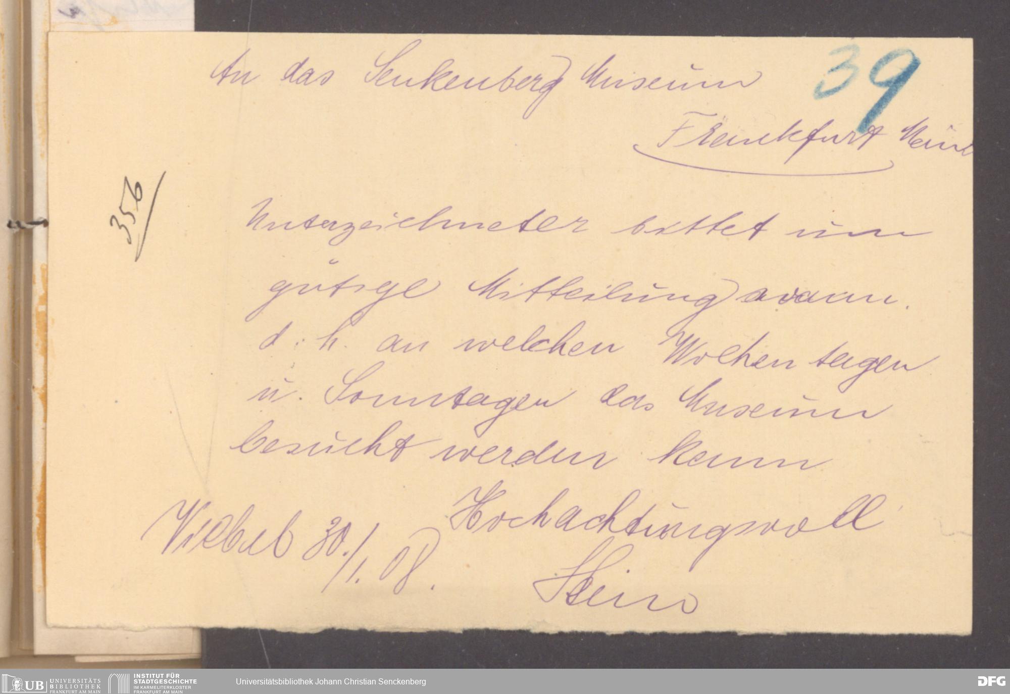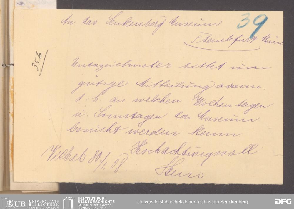 V176 Senckenberg Gesellschaft für Naturforschung, 355 - Anfragen zum Besuch des Senckenbergmuseums, Bd. 1