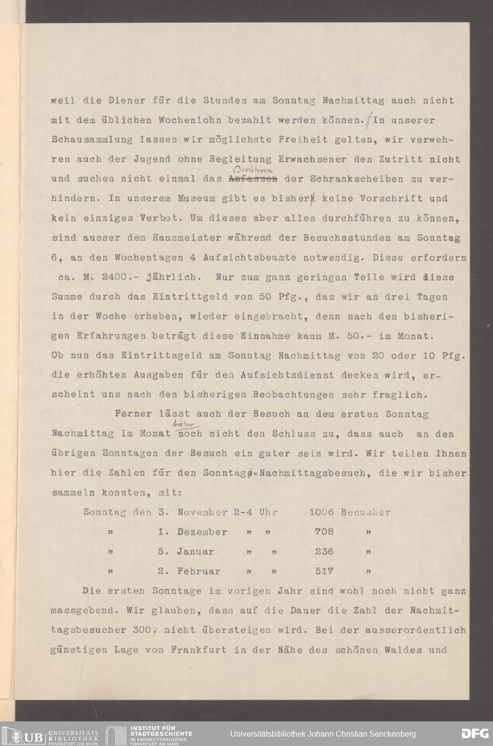 V176 Senckenberg Gesellschaft für Naturforschung, 355 - Anfragen zum Besuch des Senckenbergmuseums, Bd. 1