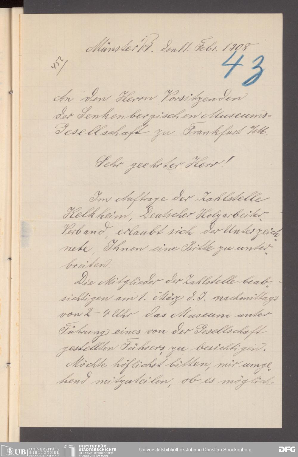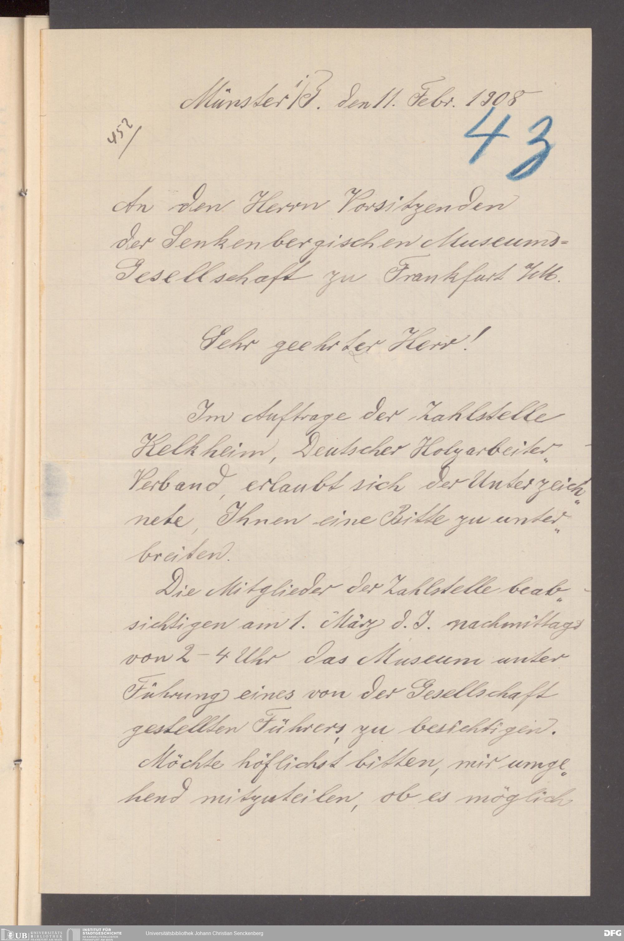 V176 Senckenberg Gesellschaft für Naturforschung, 355 - Anfragen zum Besuch des Senckenbergmuseums, Bd. 1