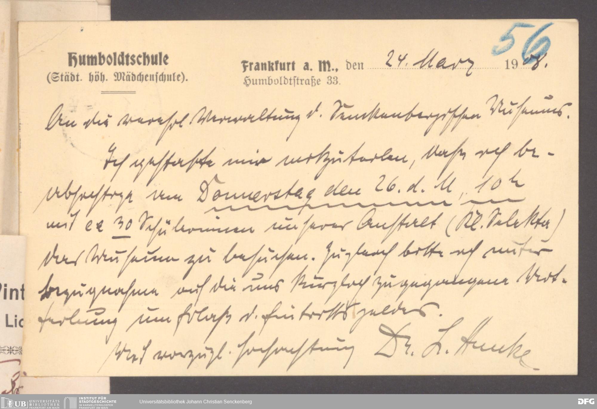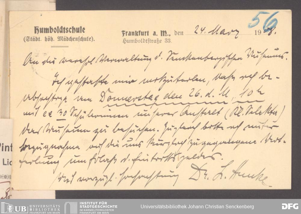 V176 Senckenberg Gesellschaft für Naturforschung, 355 - Anfragen zum Besuch des Senckenbergmuseums, Bd. 1