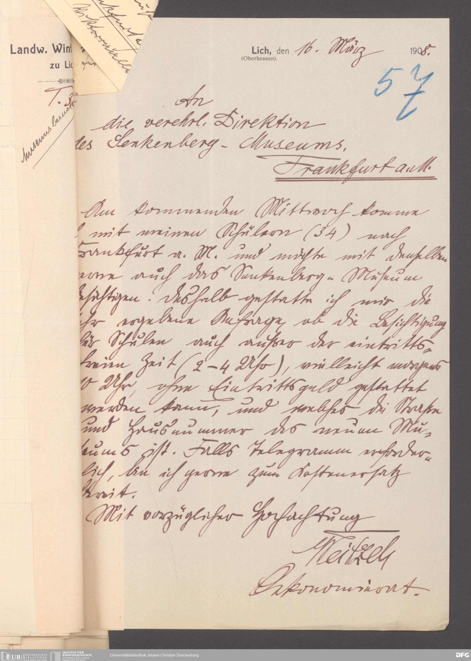 V176 Senckenberg Gesellschaft für Naturforschung, 355 - Anfragen zum Besuch des Senckenbergmuseums, Bd. 1
