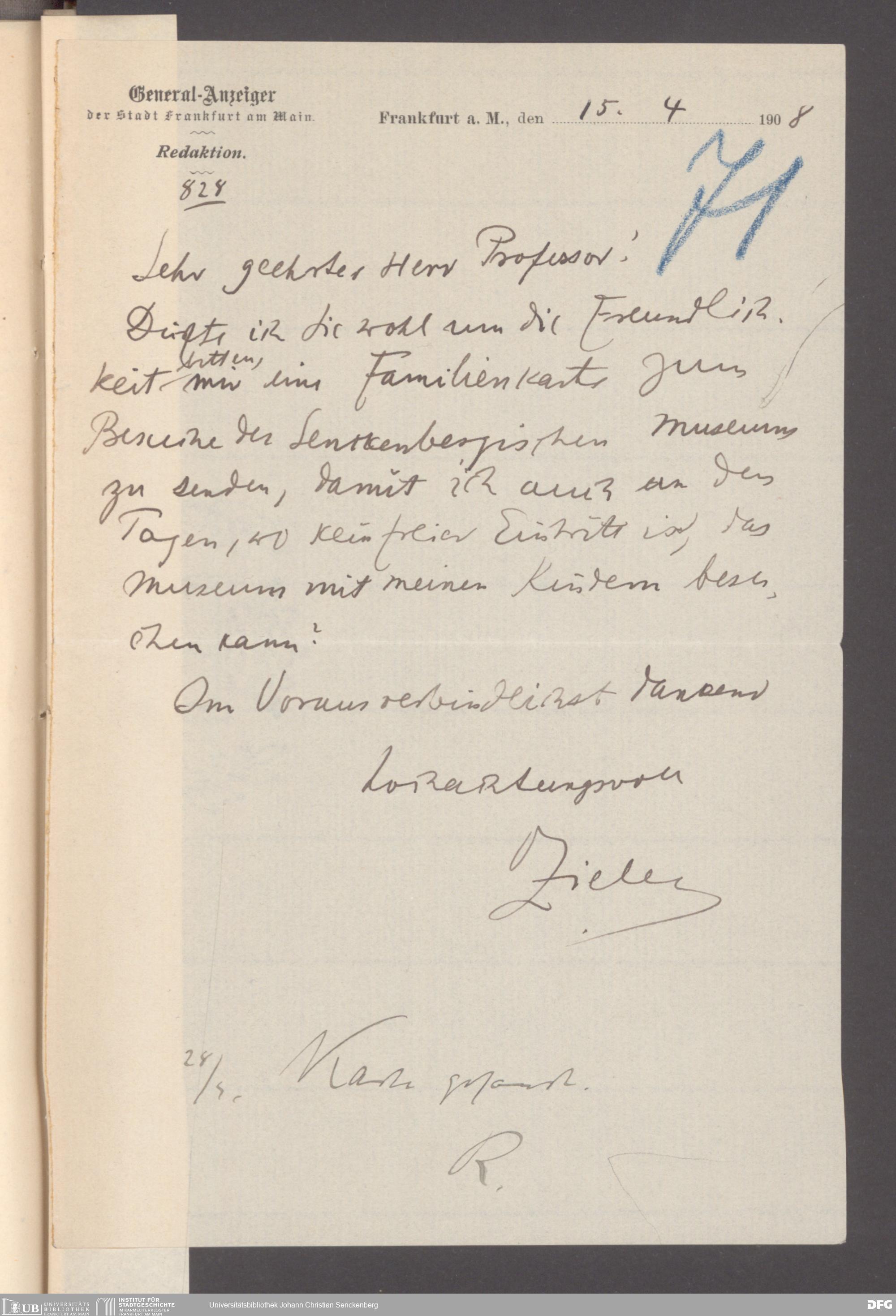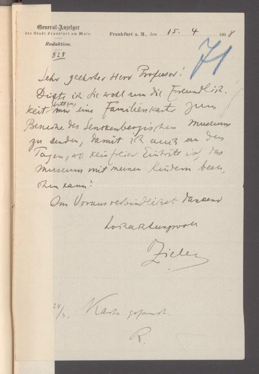V176 Senckenberg Gesellschaft für Naturforschung, 355 - Anfragen zum Besuch des Senckenbergmuseums, Bd. 1