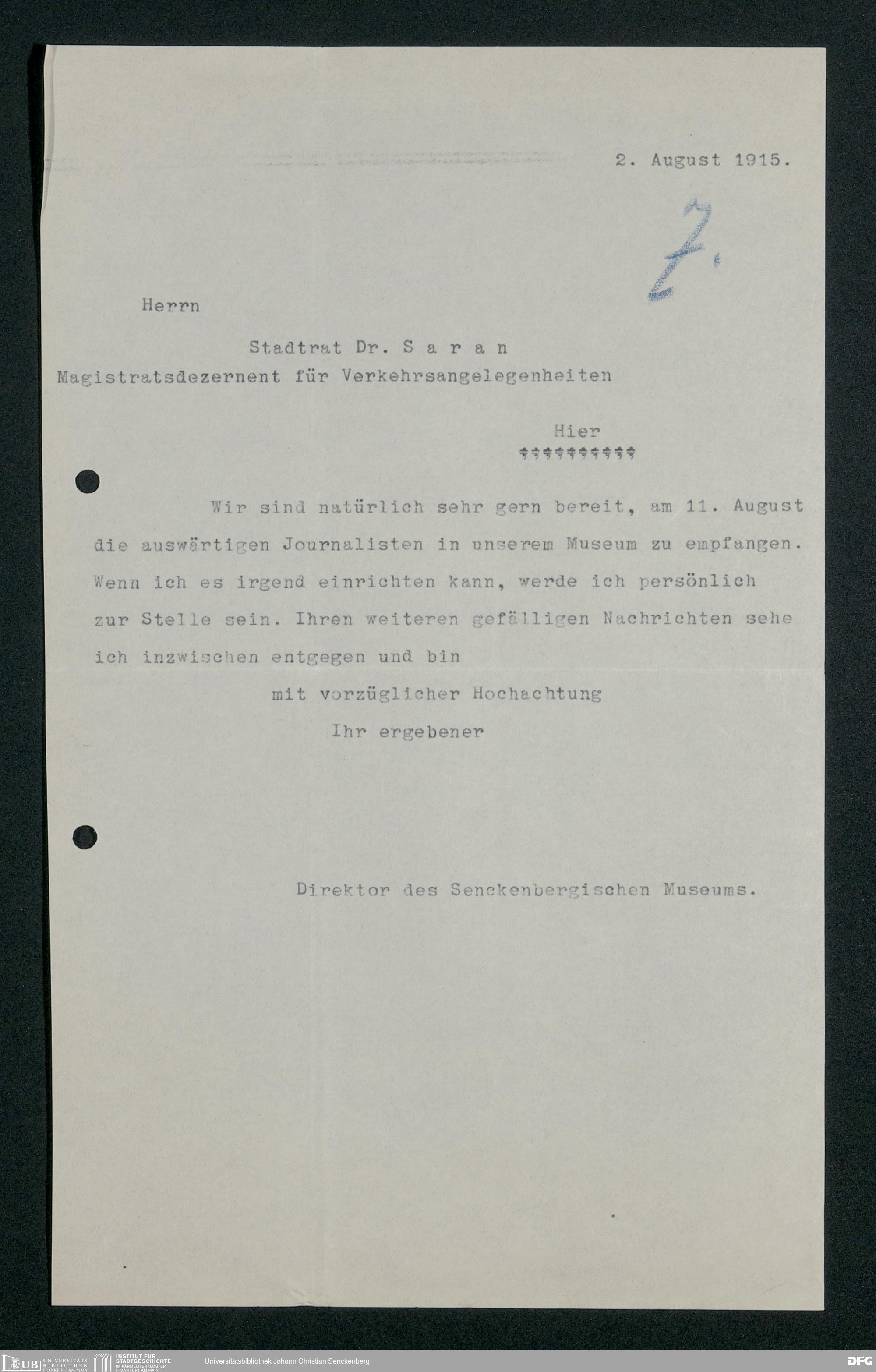 V176 Senckenberg Gesellschaft für Naturforschung, 357 - Anfragen zum Besuch des Senckenbergmuseums, Bd. 3