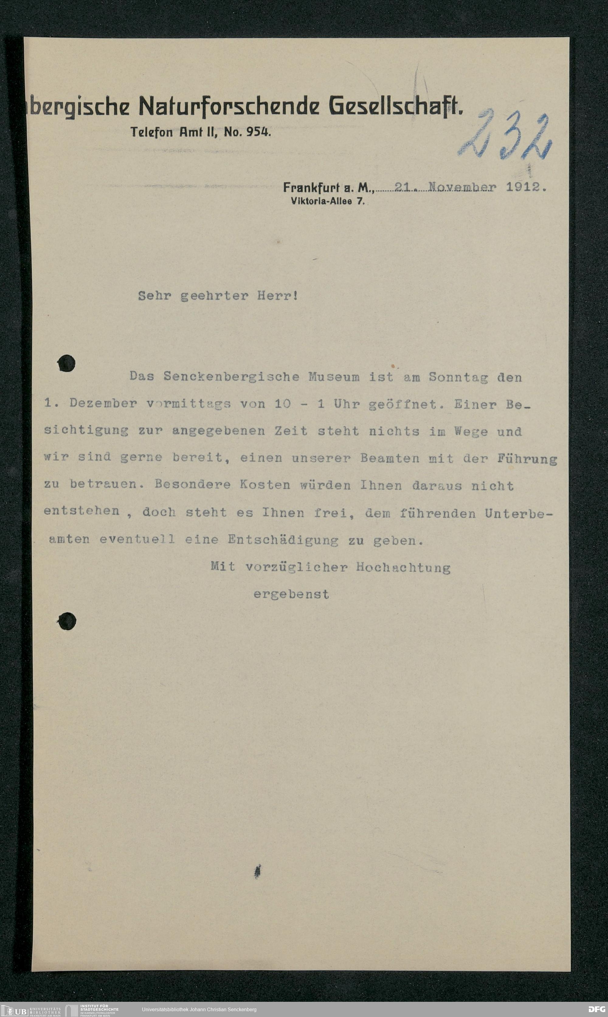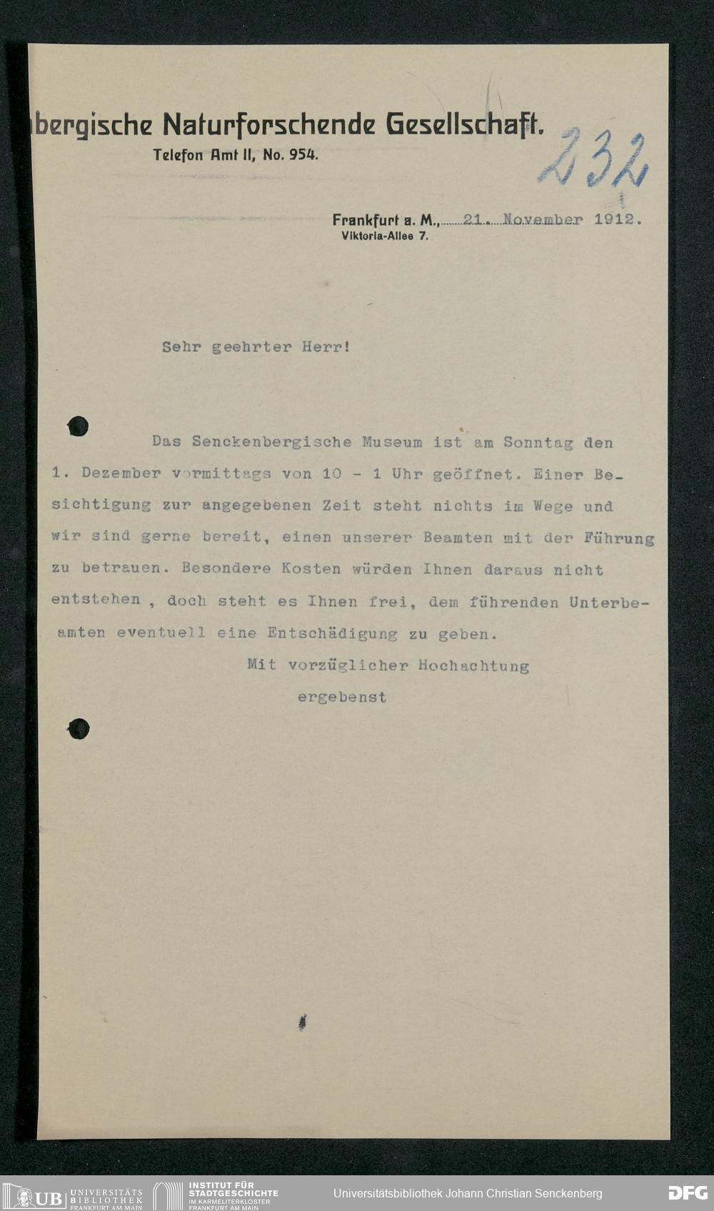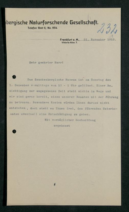 V176 Senckenberg Gesellschaft für Naturforschung, 357 - Anfragen zum Besuch des Senckenbergmuseums, Bd. 3