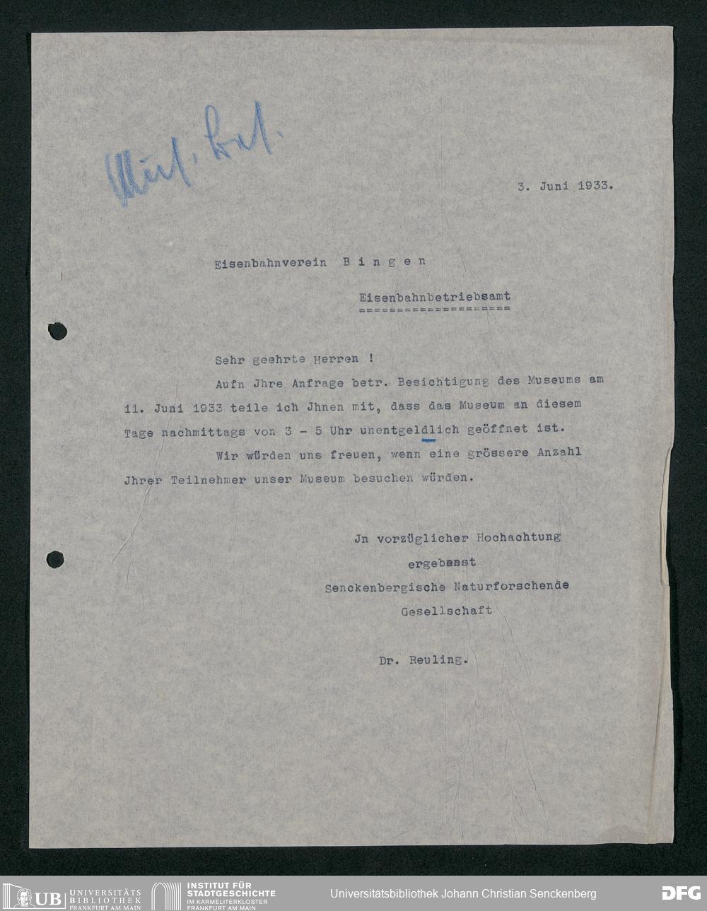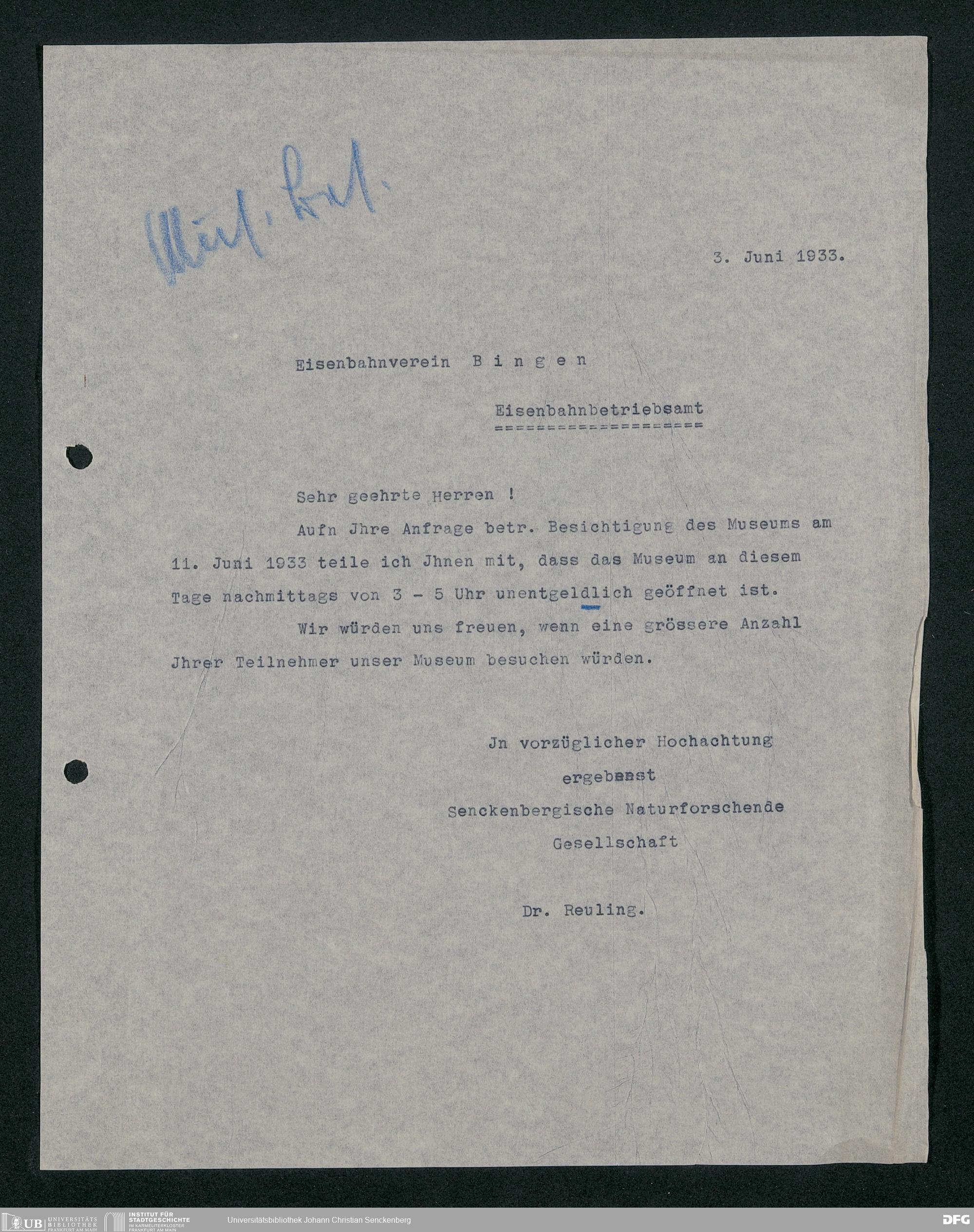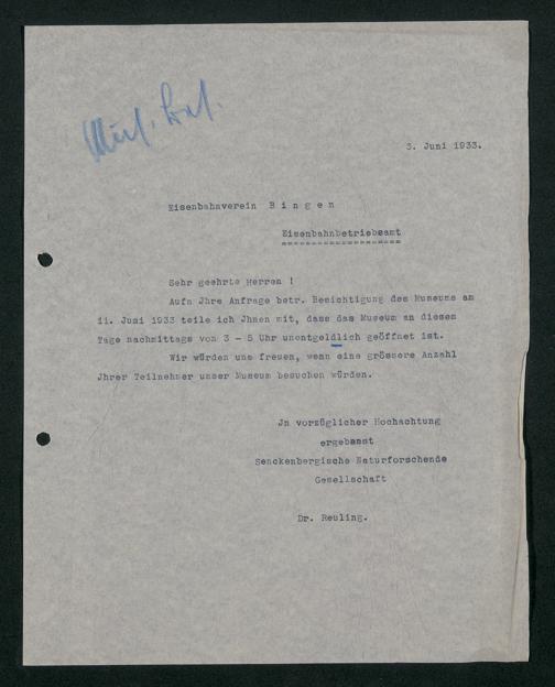 V176 Senckenberg Gesellschaft für Naturforschung, 359 - Anfragen zum Besuch des Senckenbergmuseums, Bd. 6