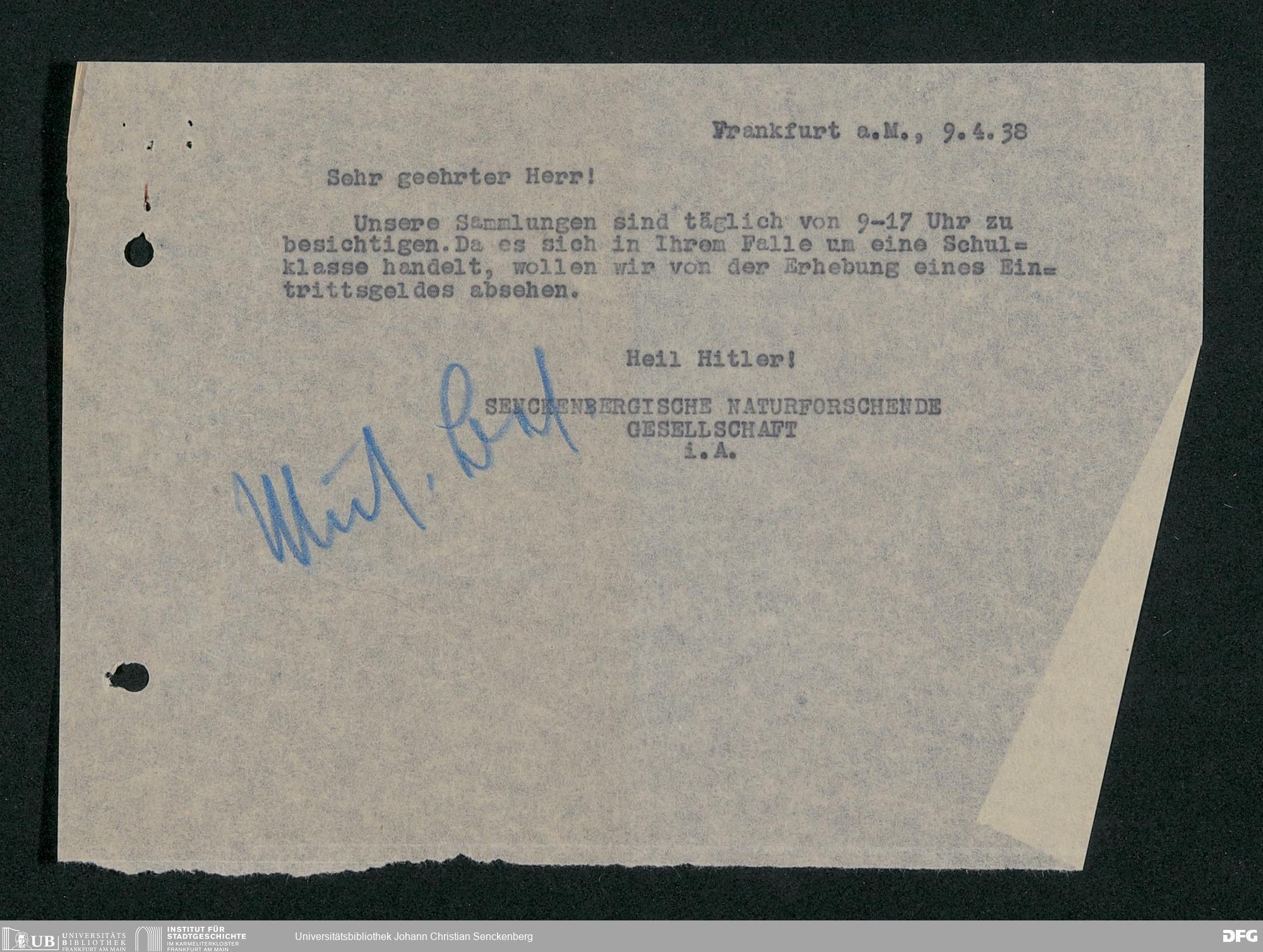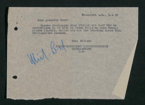 V176 Senckenberg Gesellschaft für Naturforschung, 359 - Anfragen zum Besuch des Senckenbergmuseums, Bd. 6
