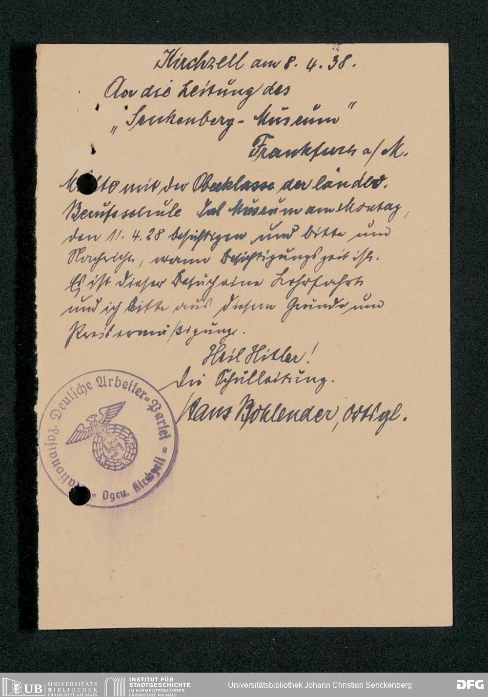 V176 Senckenberg Gesellschaft für Naturforschung, 359 - Anfragen zum Besuch des Senckenbergmuseums, Bd. 6