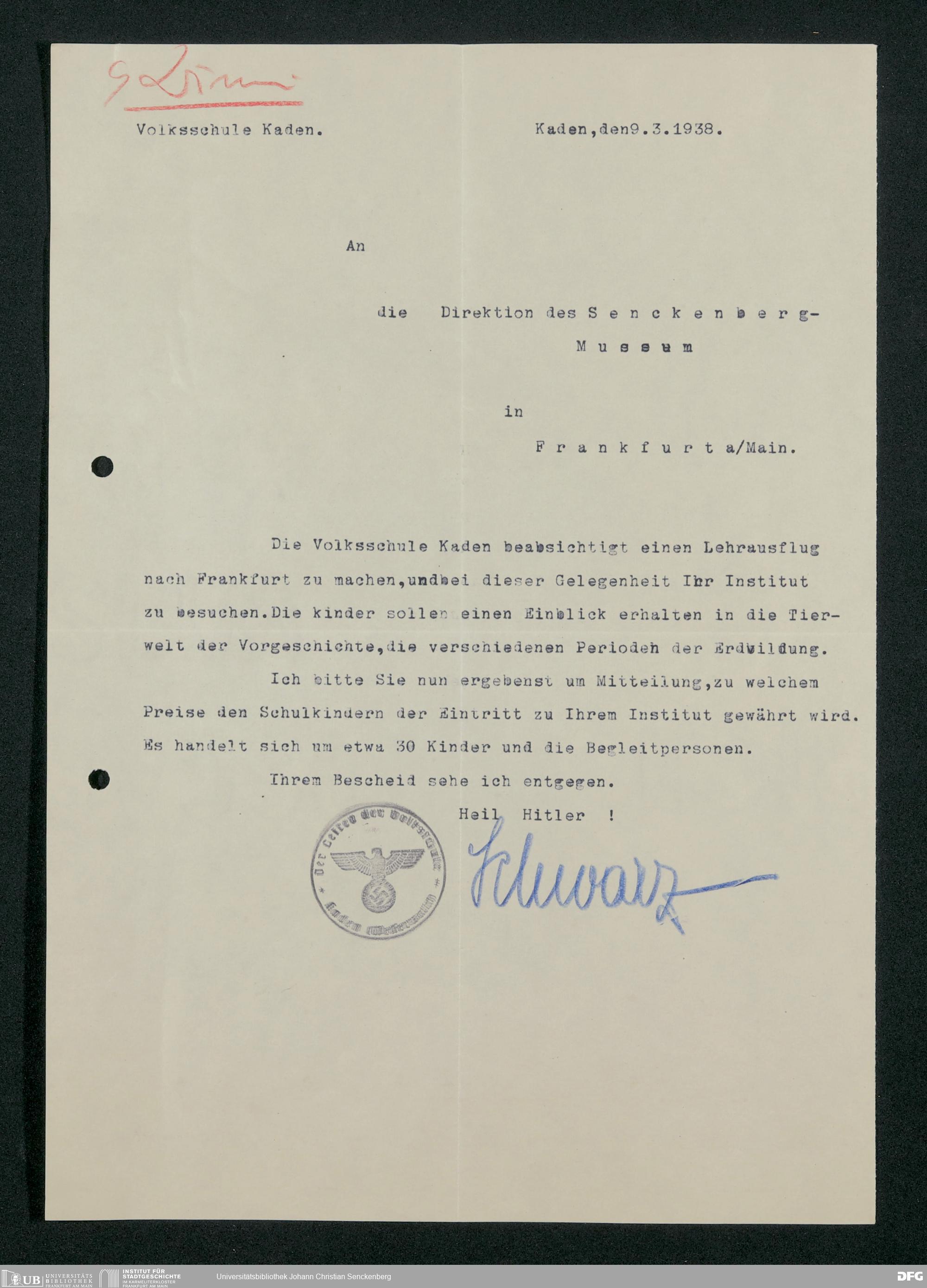 V176 Senckenberg Gesellschaft für Naturforschung, 359 - Anfragen zum Besuch des Senckenbergmuseums, Bd. 6