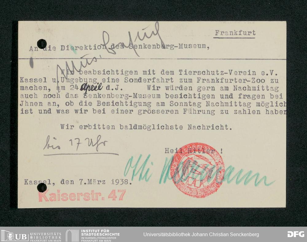 V176 Senckenberg Gesellschaft für Naturforschung, 359 - Anfragen zum Besuch des Senckenbergmuseums, Bd. 6