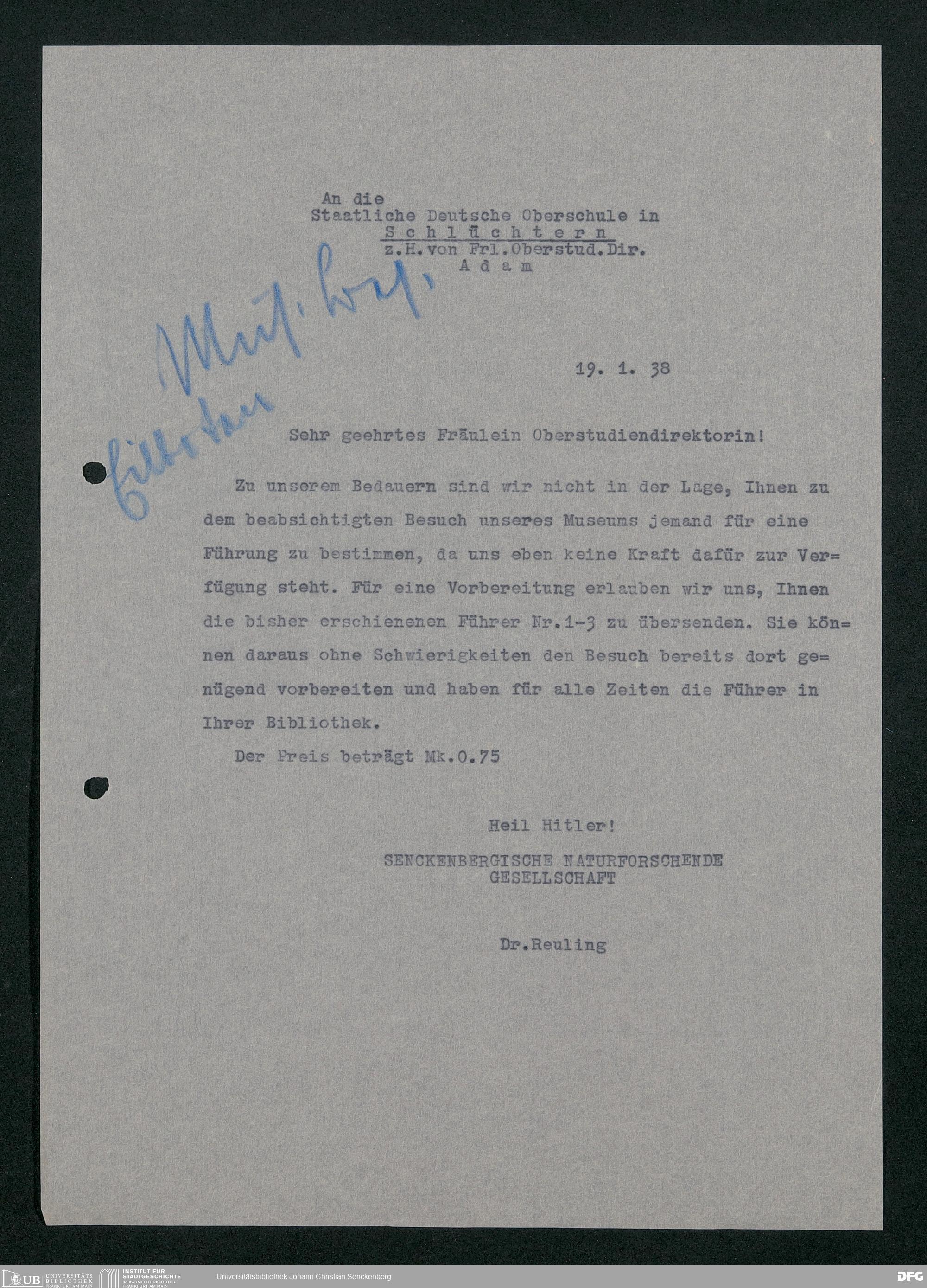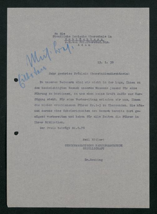 V176 Senckenberg Gesellschaft für Naturforschung, 359 - Anfragen zum Besuch des Senckenbergmuseums, Bd. 6