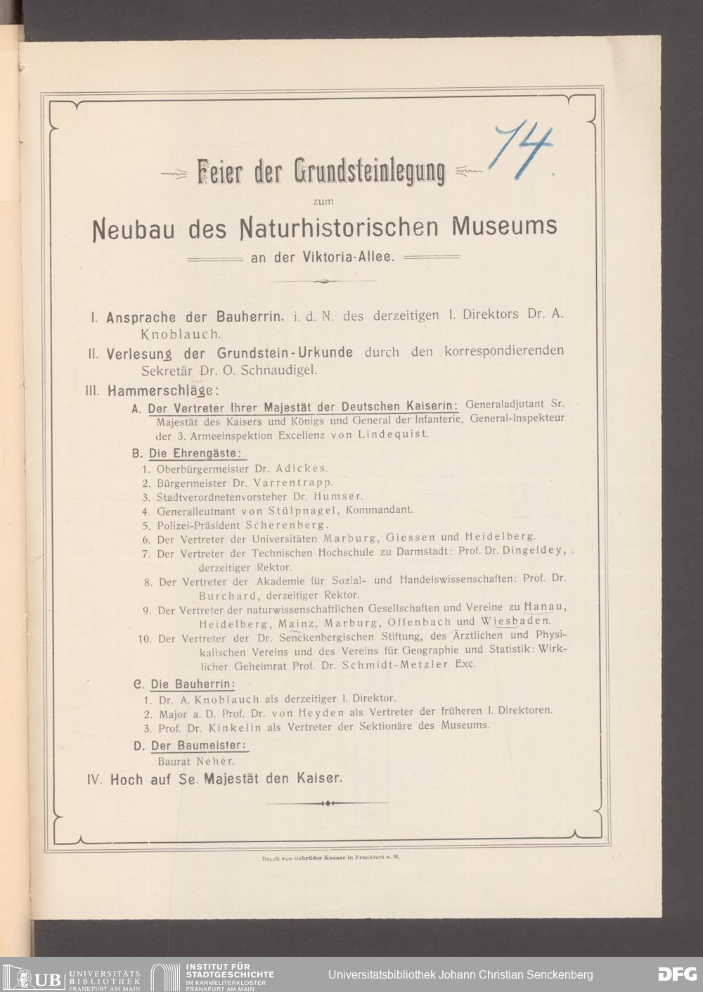 V176 Senckenberg Gesellschaft für Naturforschung, 360 - Organisation der Jahresfeiern, Bd. 1