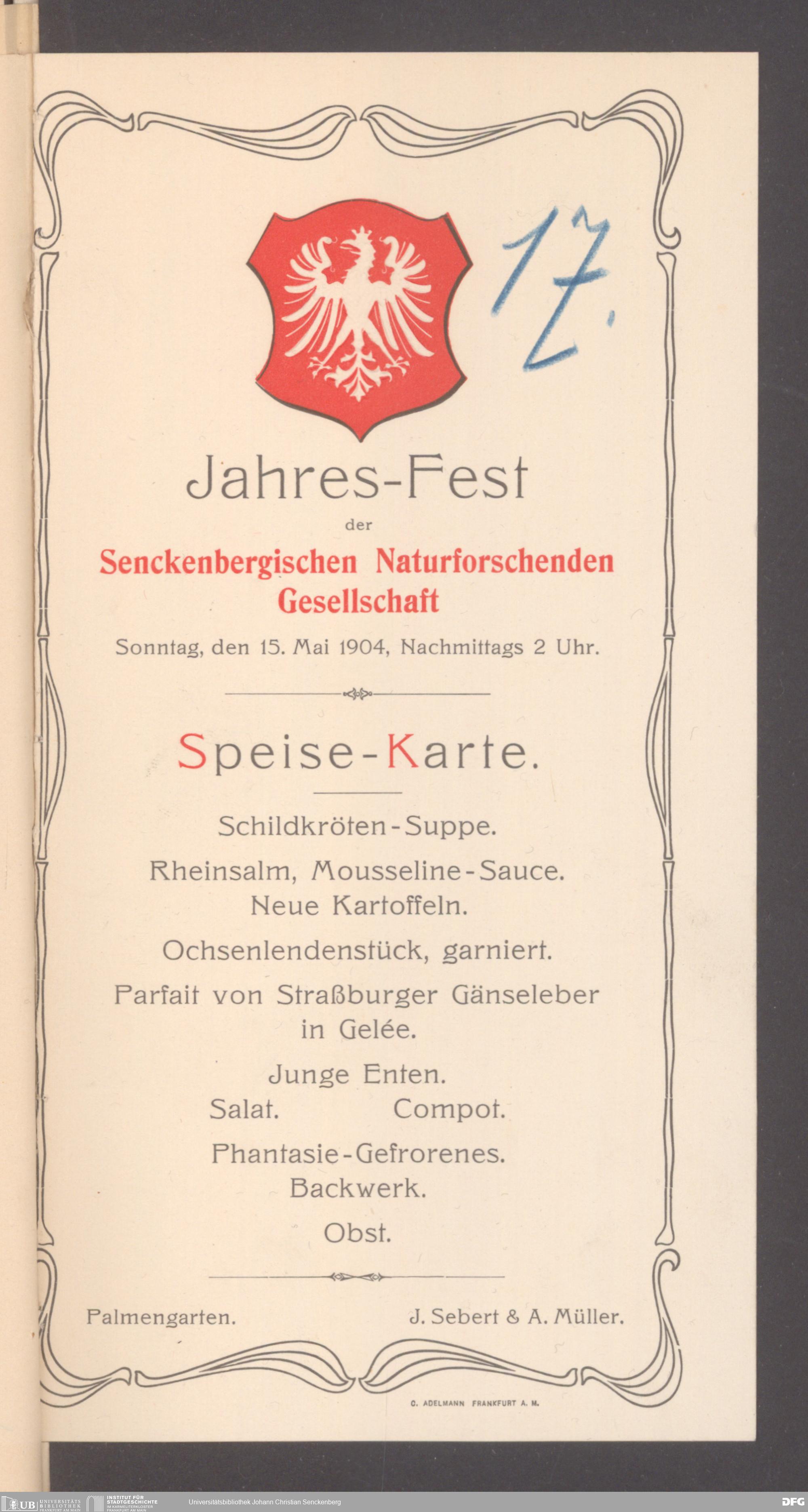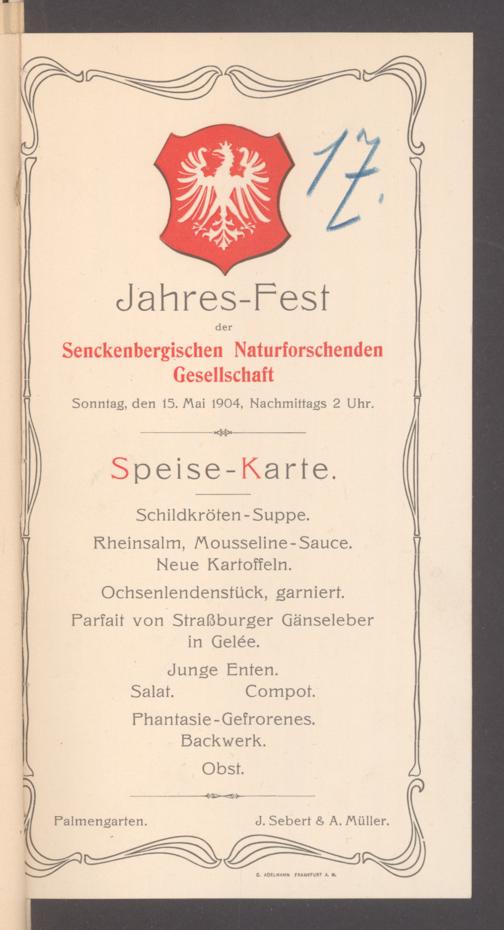 V176 Senckenberg Gesellschaft für Naturforschung, 360 - Organisation der Jahresfeiern, Bd. 1