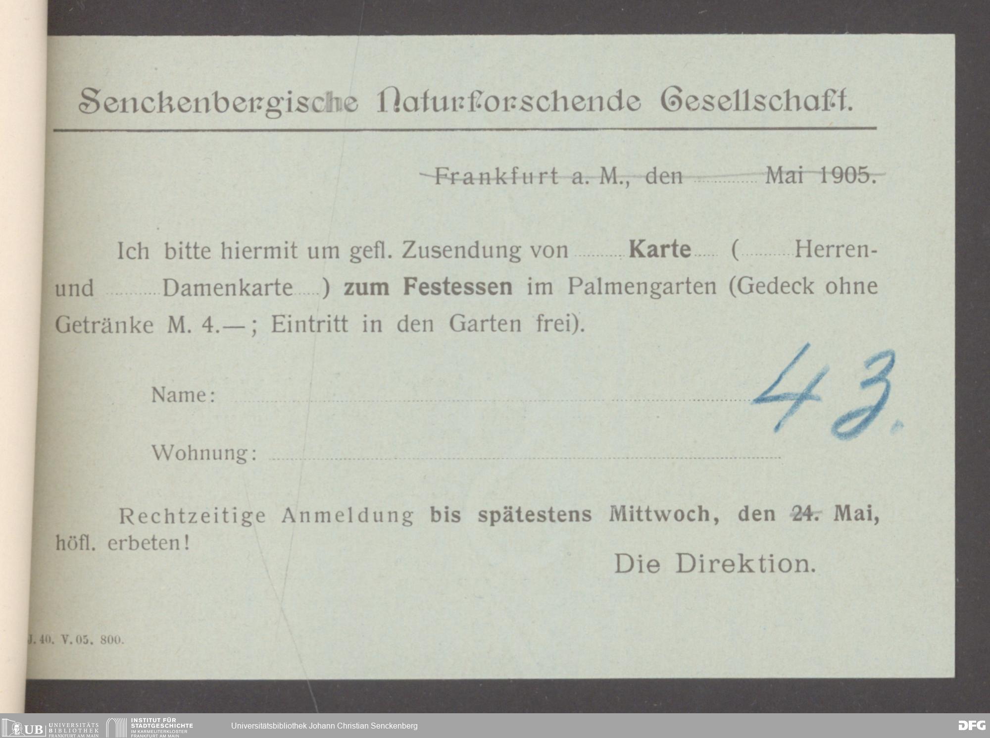 V176 Senckenberg Gesellschaft für Naturforschung, 360 - Organisation der Jahresfeiern, Bd. 1