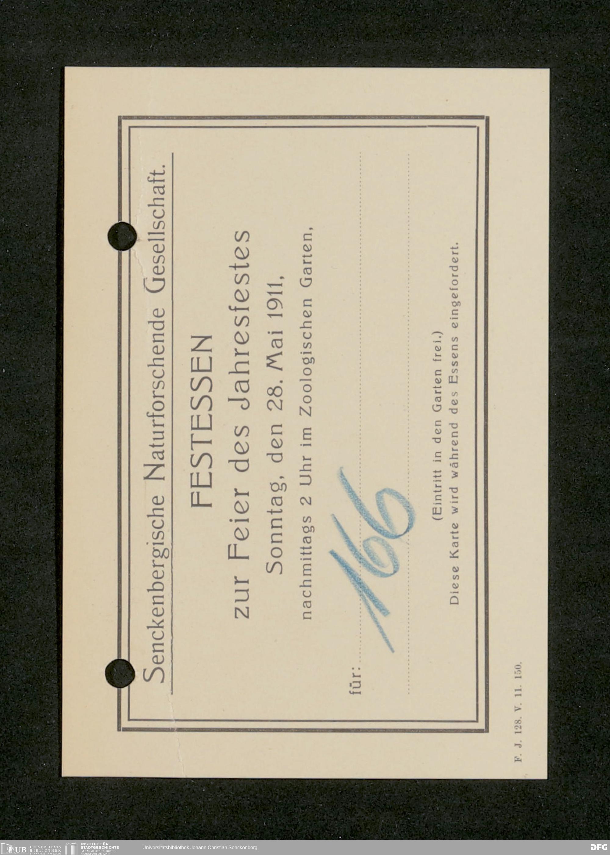 V176 Senckenberg Gesellschaft für Naturforschung, 360 - Organisation der Jahresfeiern, Bd. 1