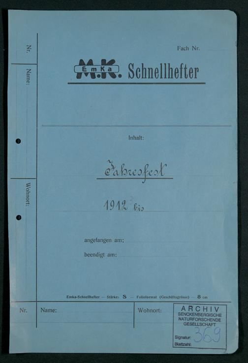 V176 Senckenberg Gesellschaft für Naturforschung, 369 - Organisation der Jahresfeiern, Bd. 2