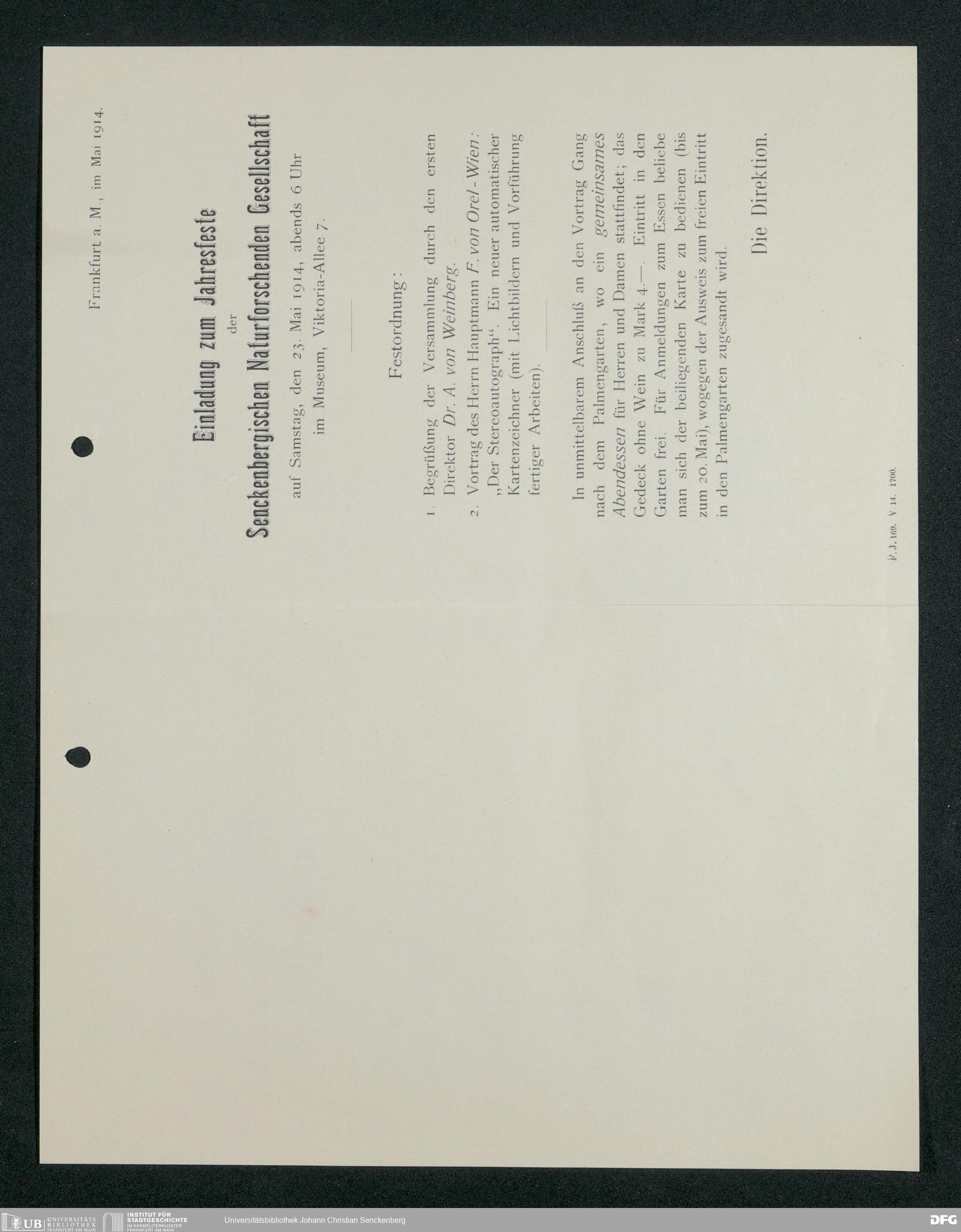 V176 Senckenberg Gesellschaft für Naturforschung, 369 - Organisation der Jahresfeiern, Bd. 2