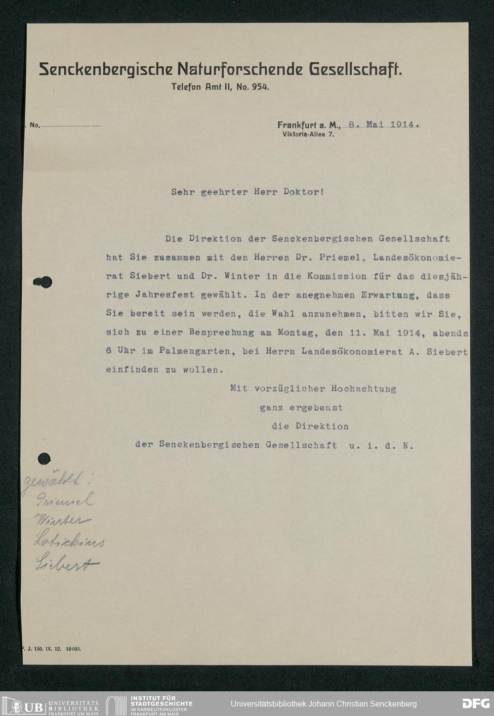 V176 Senckenberg Gesellschaft für Naturforschung, 369 - Organisation der Jahresfeiern, Bd. 2